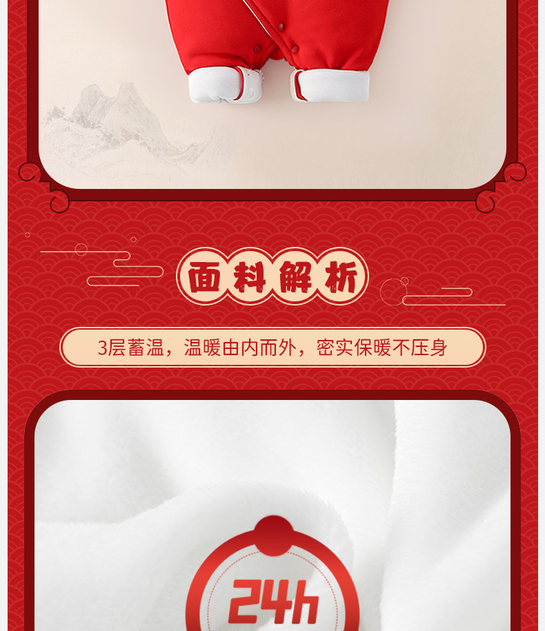 아기 새해 인사말 옷 겨울 옷 아기 퀼트 따뜻한 점프 수트 두꺼운면 패딩 옷 축제 새해 인사복스토어 가기