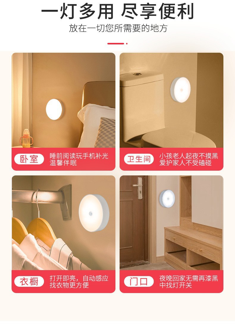 국경을 넘는 지능형 인체 감지등, 사람이 움직일 때 조명이 꺼지고, 복도, 주방 캐비닛, 현관, 야간 조명, 충전식, 배선 불필요, 소형 야간 조명