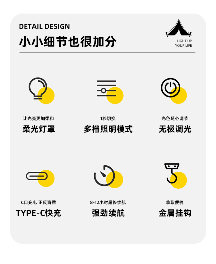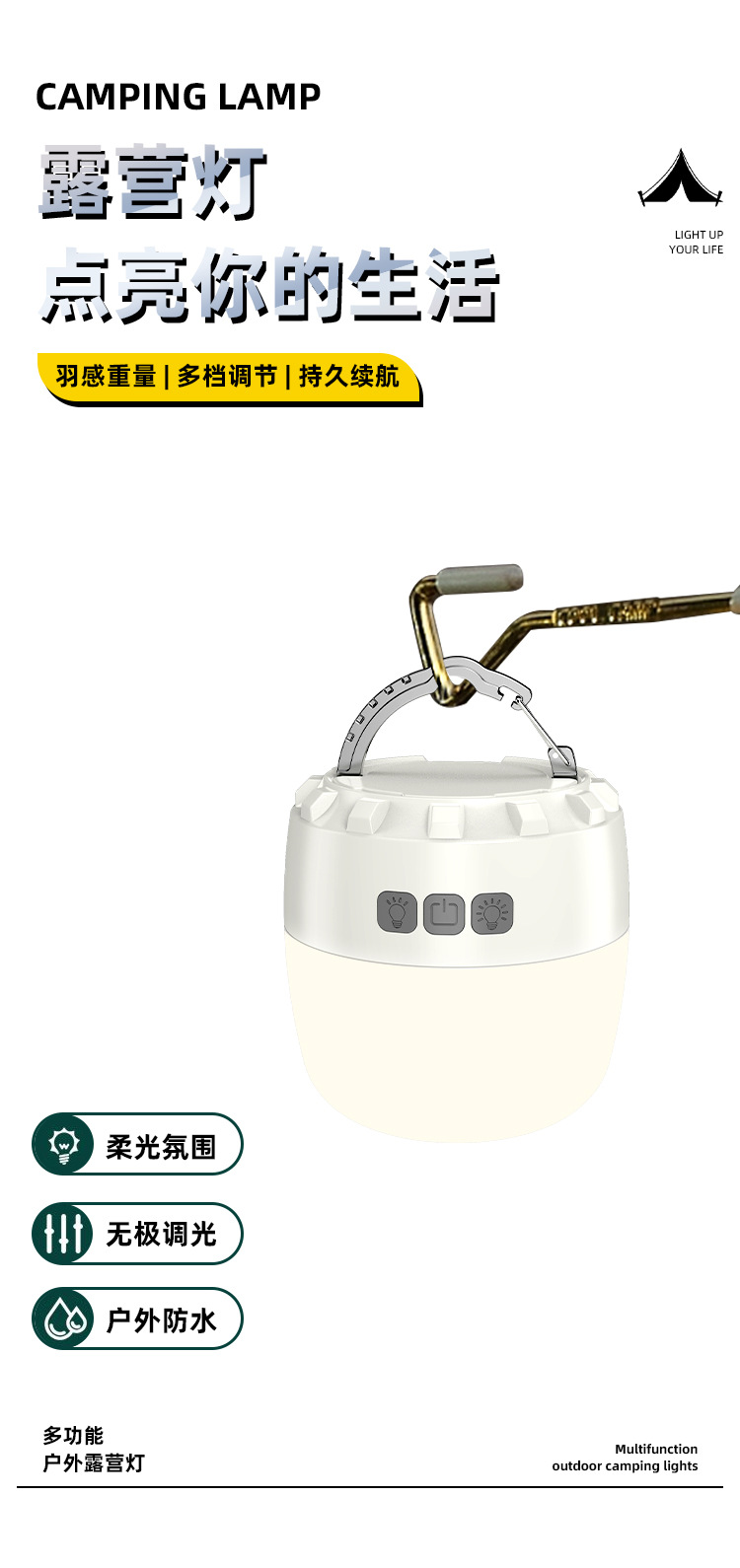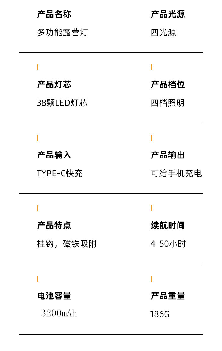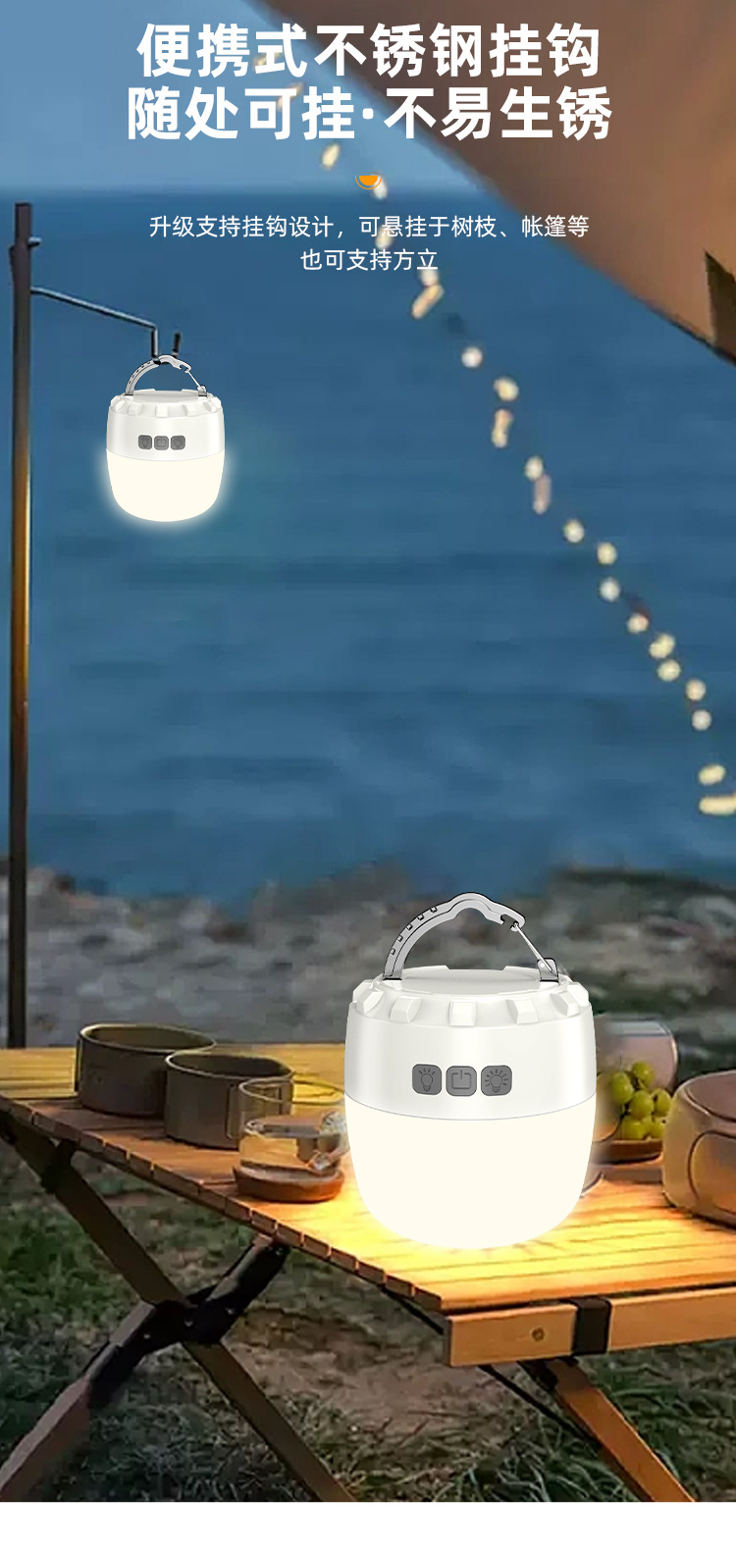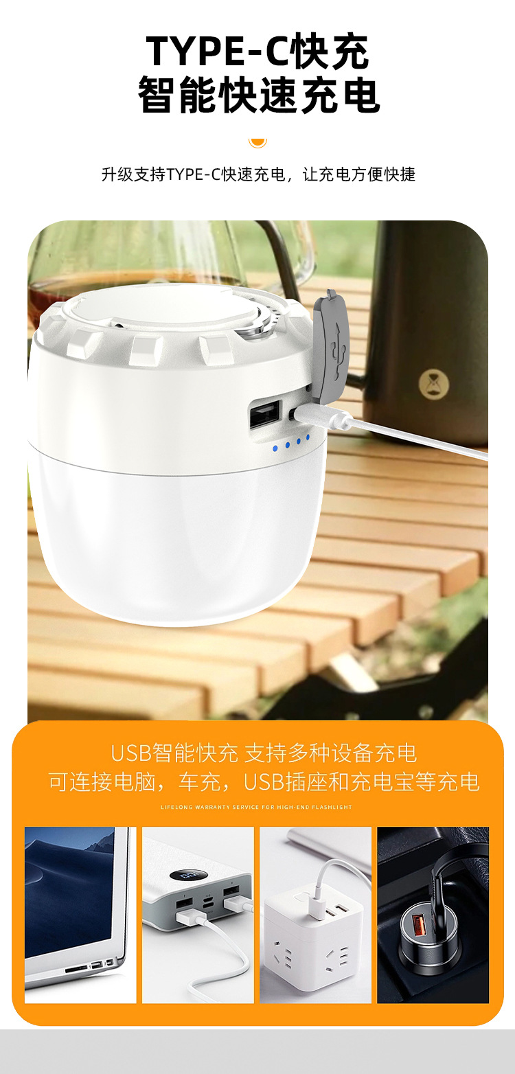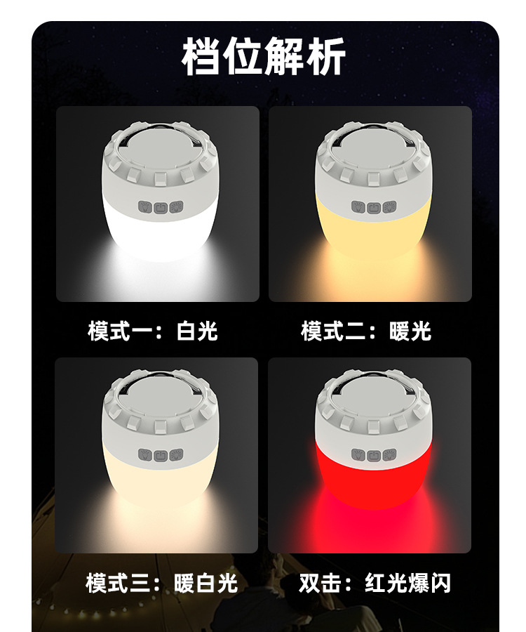 국경 간 새로운 캠핑 조명 야외 다기능 캠핑 조명 긴 수명 충전 비상 분위기 텐트 조명
