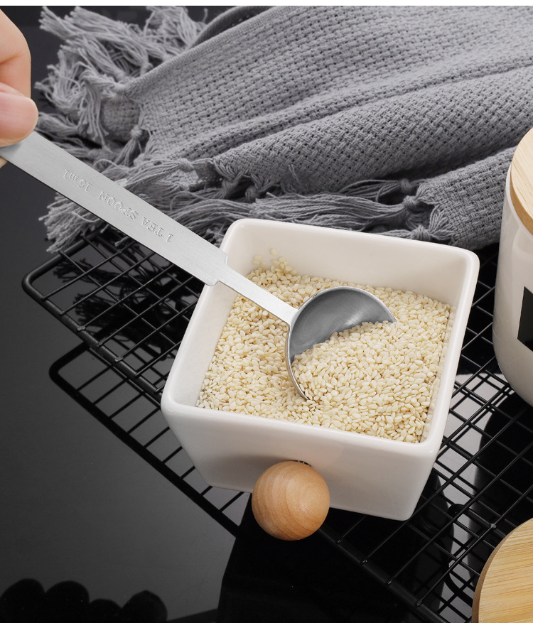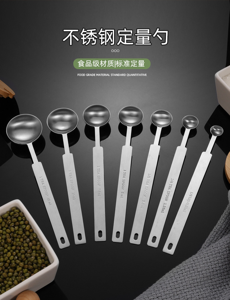 큰 뜨거운 판매 재고 스테인레스 스틸 확장 핸들 조미료 숟가락 베이킹 측정 숟가락 세트 스테인레스 스틸 커피 스푼 우유 가루 숟가락