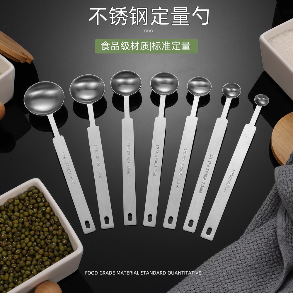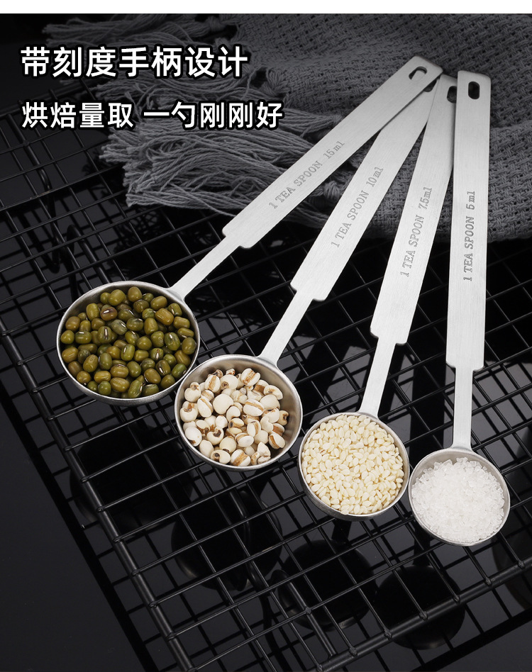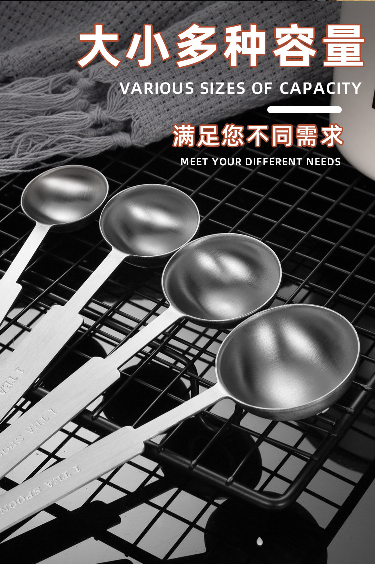 큰 뜨거운 판매 재고 스테인레스 스틸 확장 핸들 조미료 숟가락 베이킹 측정 숟가락 세트 스테인레스 스틸 커피 스푼 우유 가루 숟가락스토어 가기