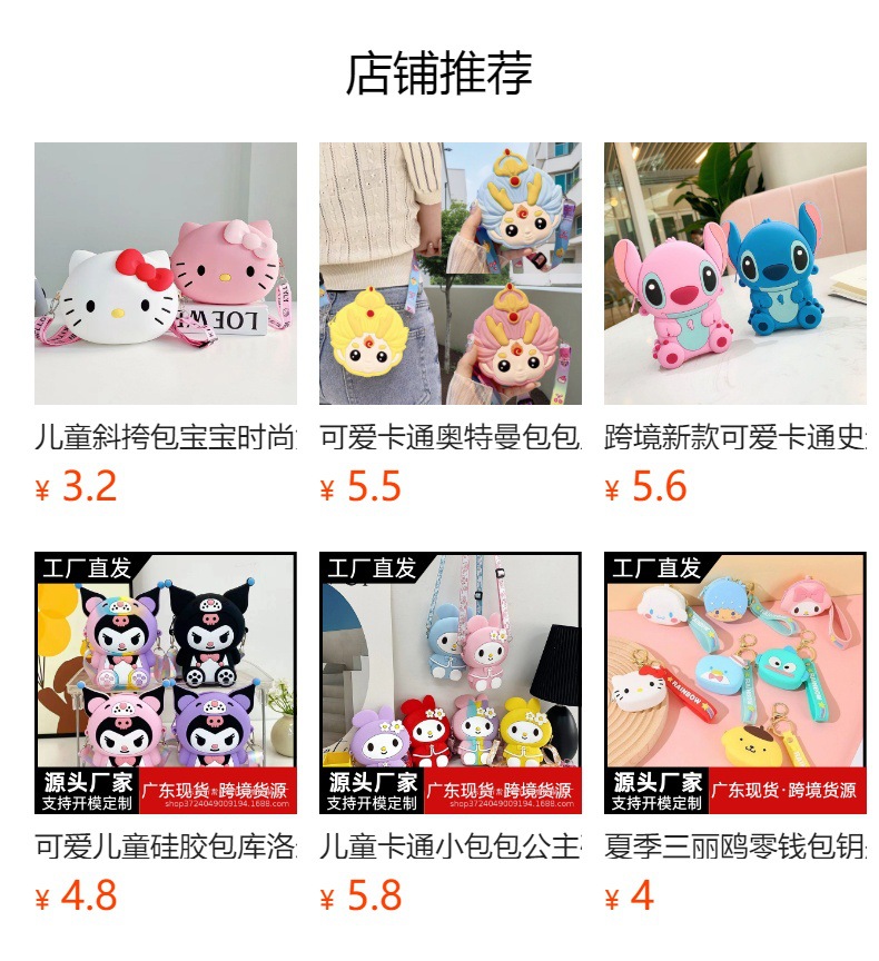 쿨로 미 어린이 가방 만화 귀여운 실리콘 가방 동전 지갑 여성 가방 메신저 가방 인터넷 유명 인사 멜로디스토어 가기