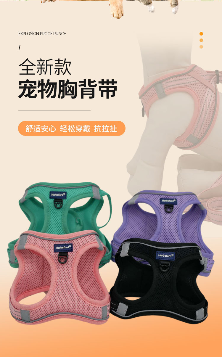 공장 맞춤형 통기성 메쉬 원단 크로스보더 애완동물 하네스 나일론 리드줄 방폭 반사 애완견 하네스스토어 가기