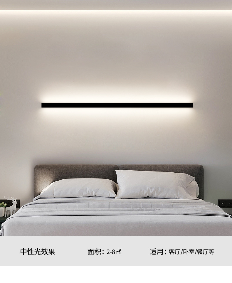 침실 침대 옆 램프 긴 벽등 심플한 북유럽 스타일 일자형 조명 거실 호텔 조명 LED 조명 분위기 조명