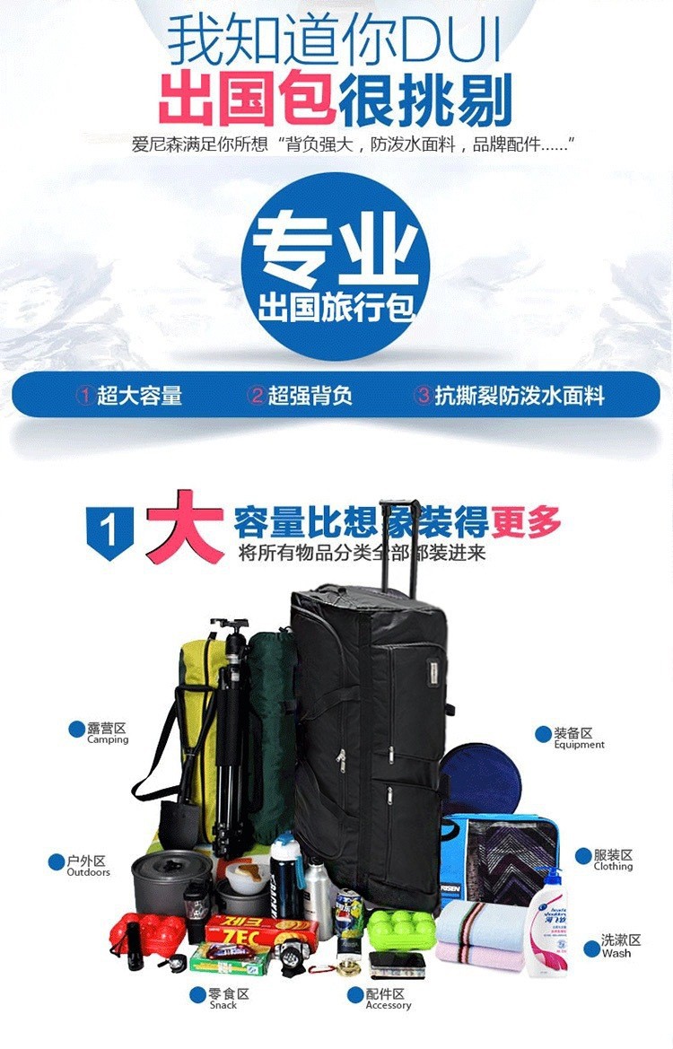 40inch 트롤리 백 초대형 용량 트롤리 백 옥스포드 천 여행 가방 방수 휴대용 수하물 초대형 가방