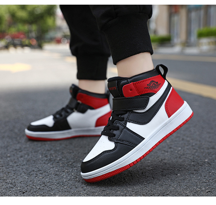 소년 하이 탑 보드 신발 2024 봄과 가을 어린이 가죽 방수 운동화 어린이 소년 AJ 공 신발 도매