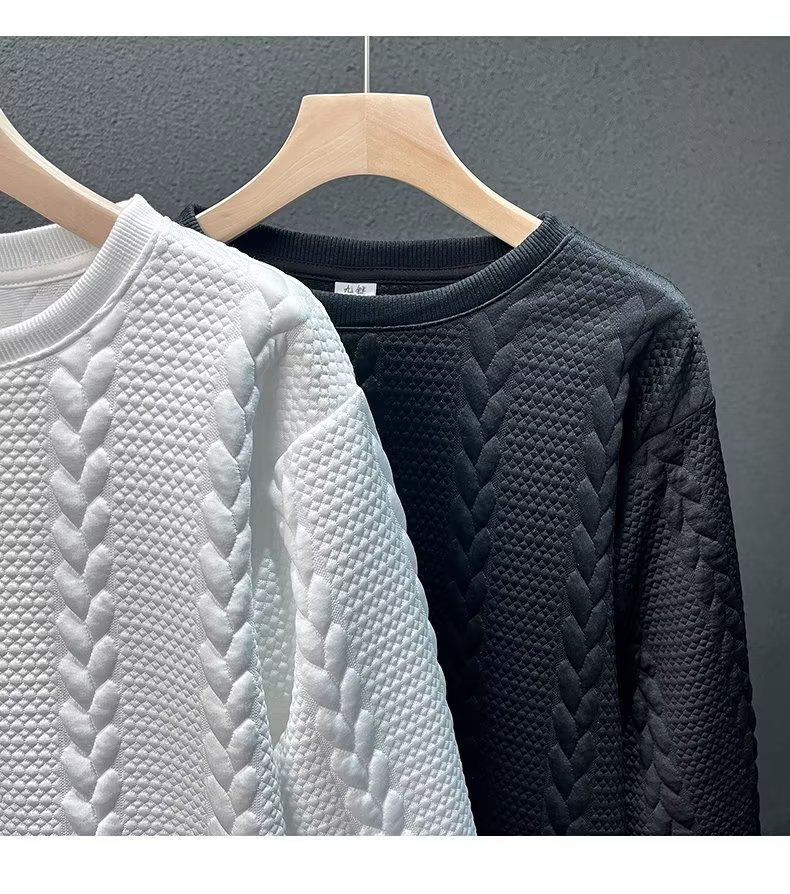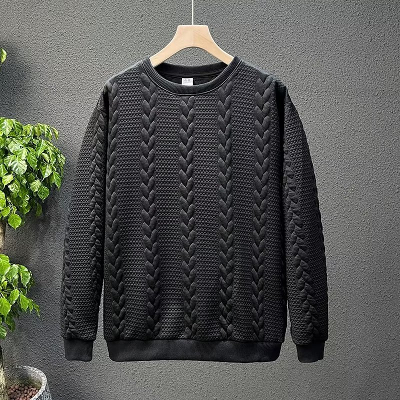 긴 소매 티셔츠 봄과 가을 스웨터 패션 브랜드 남성 무거운 자카드 새로운 플러스 사이즈 뚱뚱한 가을 겨울 탑스토어 가기