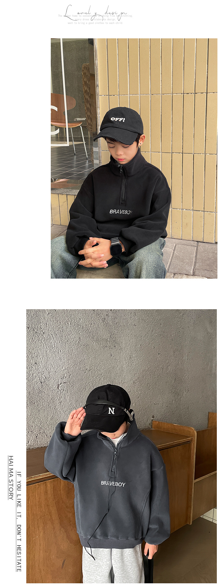 남아용 오리지널 벨벳 스탠드업 칼라 스웨트셔츠 2024 한국어 버전 아동용 겨울 상의 플러스 벨벳 아동복스토어 가기