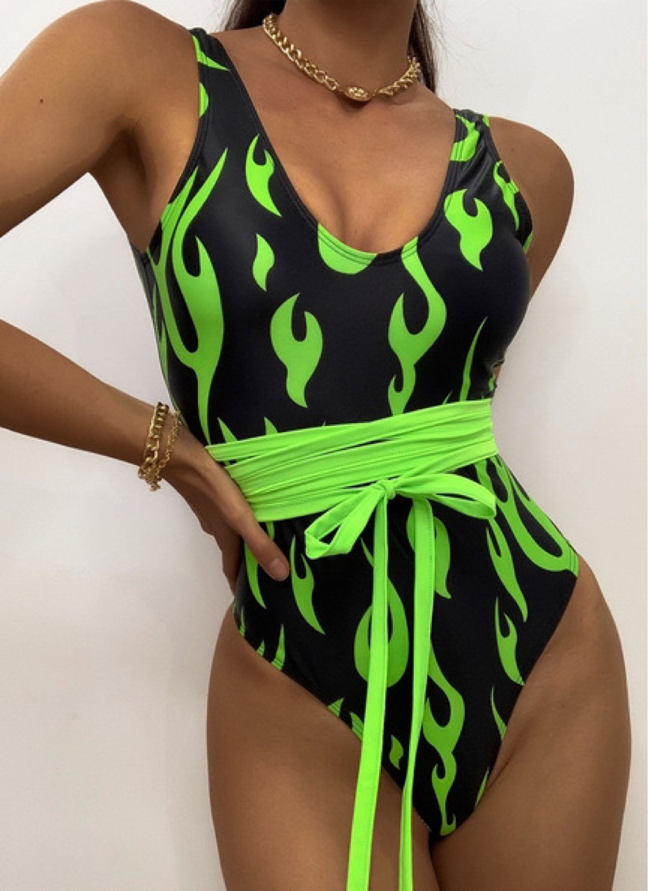 비키니 러시아 유럽과 미국의 인기있는 불꽃 프린트 섹시한 단단한 원피스 비키니 수영복