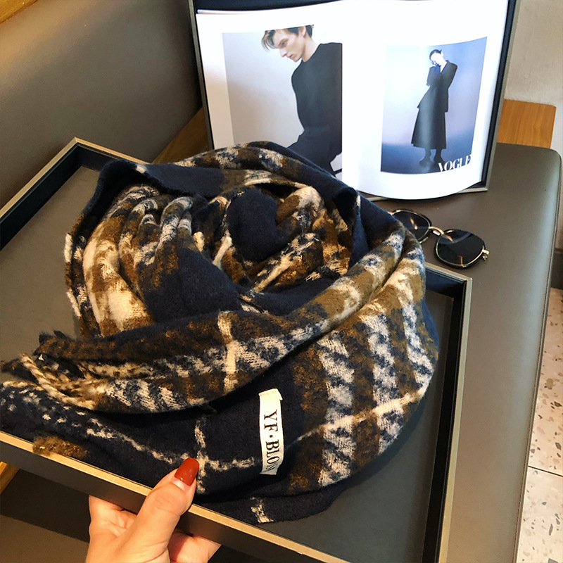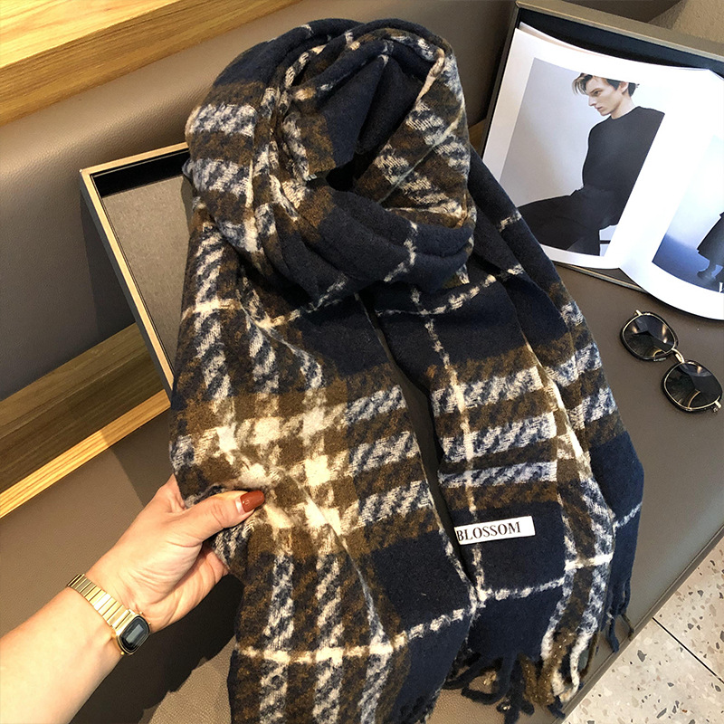 겨울 따뜻한 냉장 편안한 통기성 목 보호 스카프 간단한 캐주얼 올 매치 맞춤형 인쇄 3 라인 격자 무늬 스카프스토어 가기