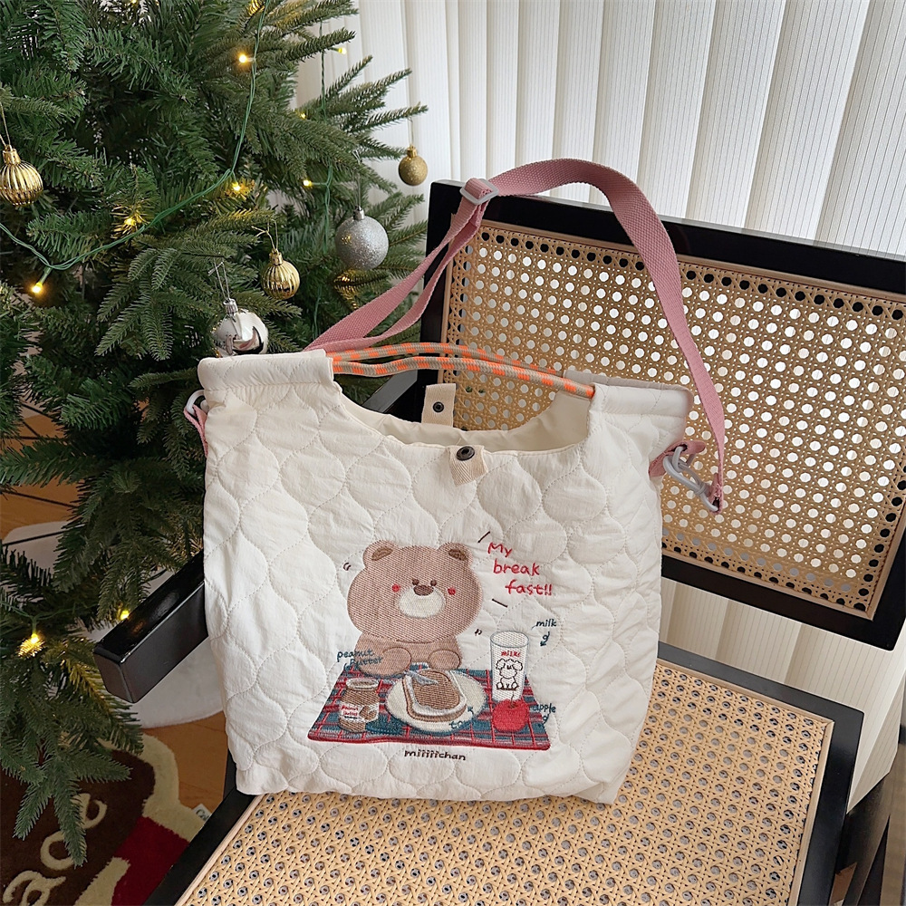 M31225 크림 가을과 겨울 새로운 대용량 캔버스 가방 퀼트 자수 핸드백 쇼핑 크로스 바디 백스토어 가기