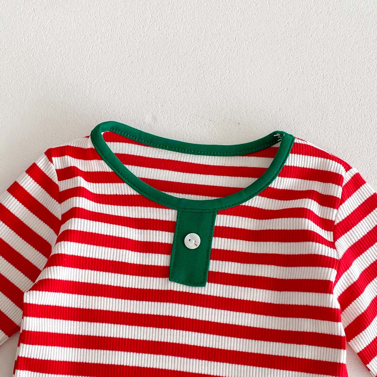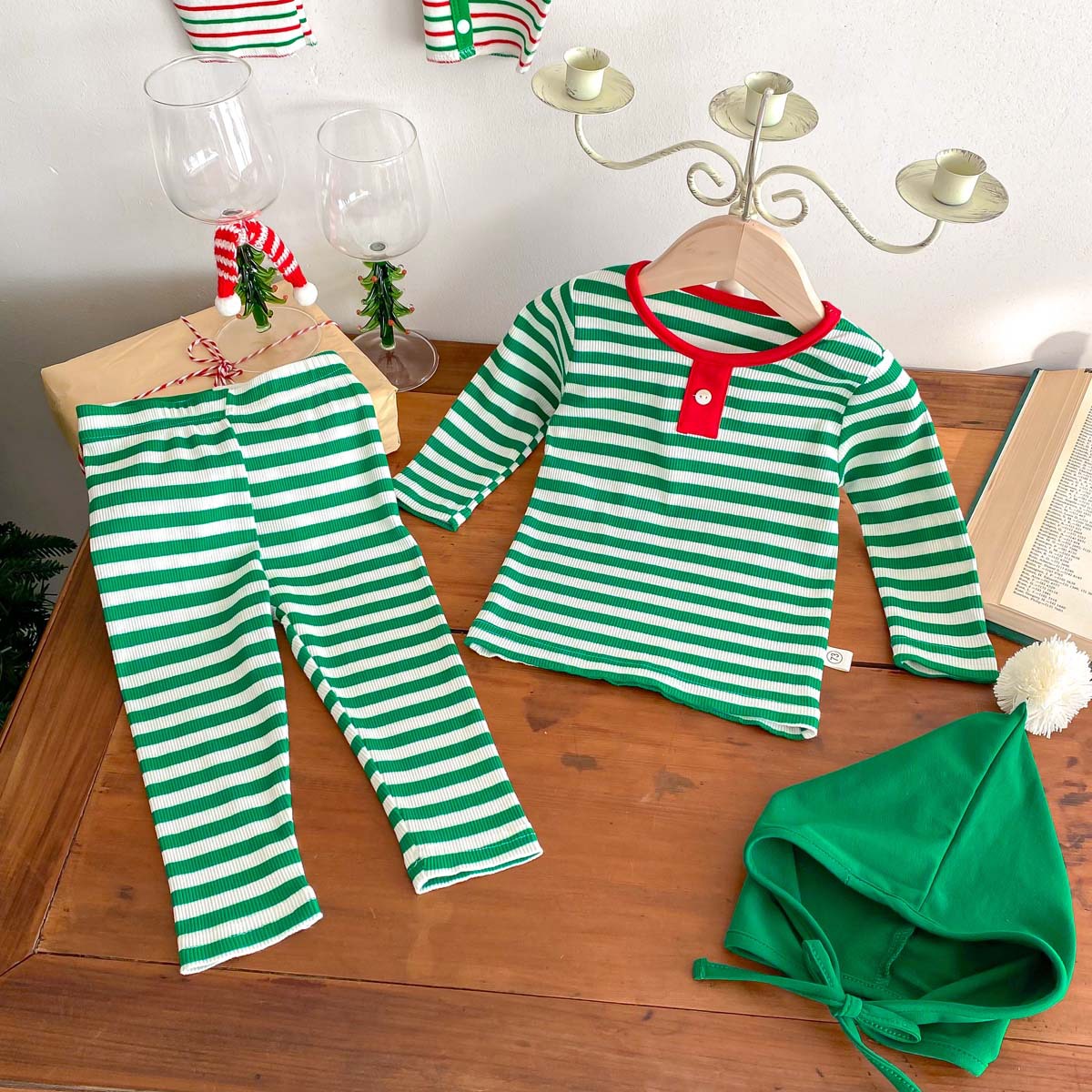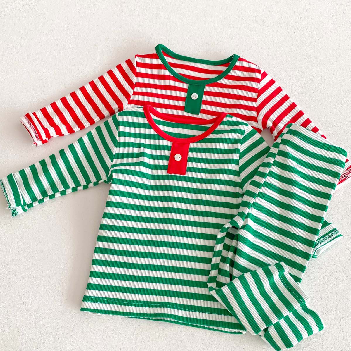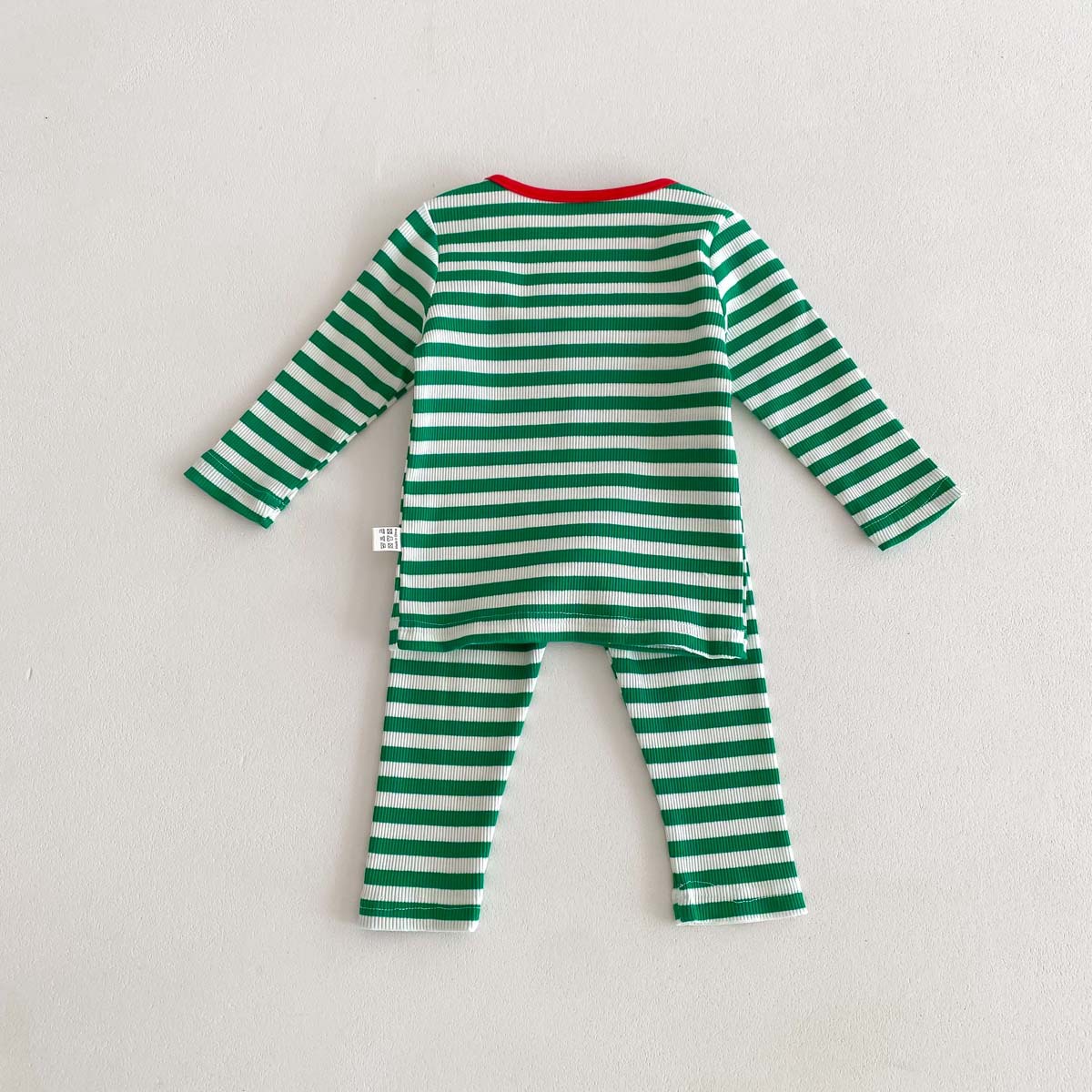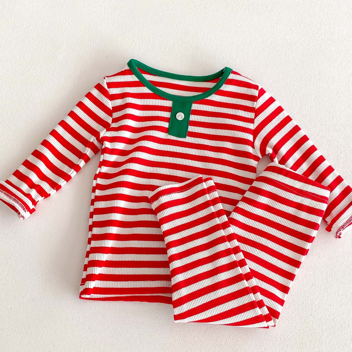어린이 가을과 겨울 줄무늬 둥근 목 홈 웨어 세트 유아 크리스마스 옷 긴 소매 바지 바닥 투피스 세트
