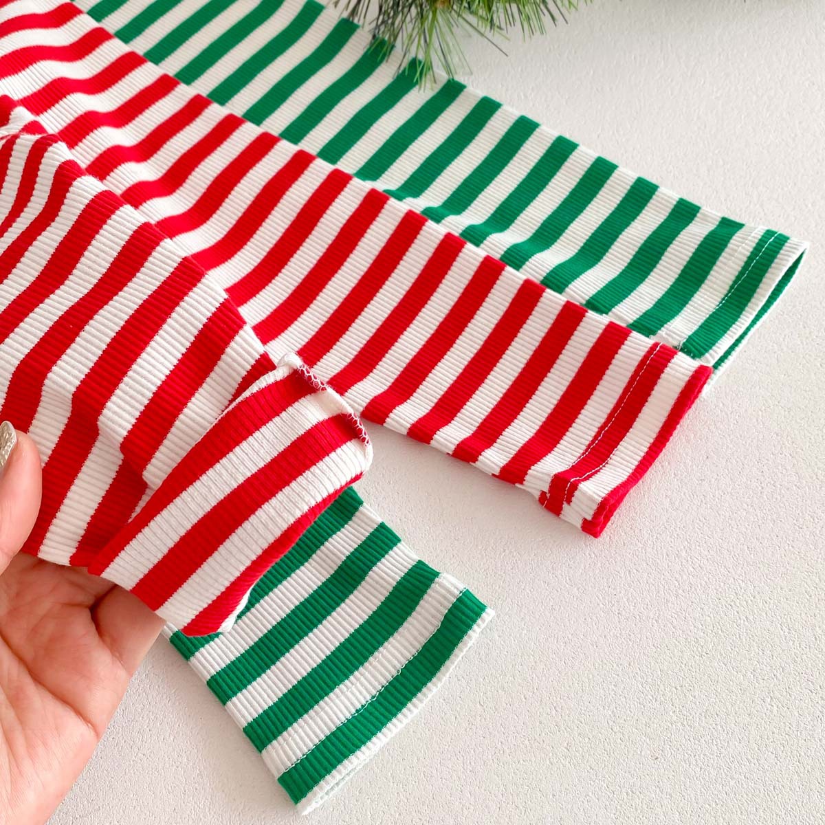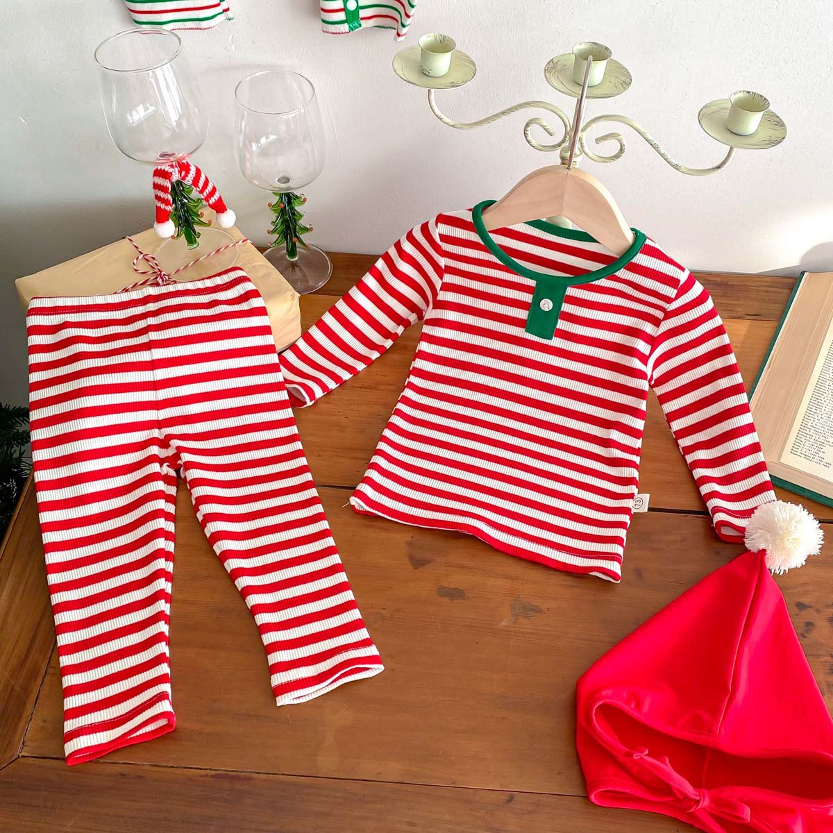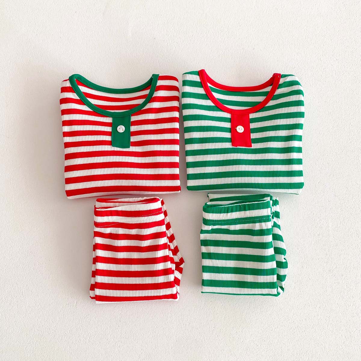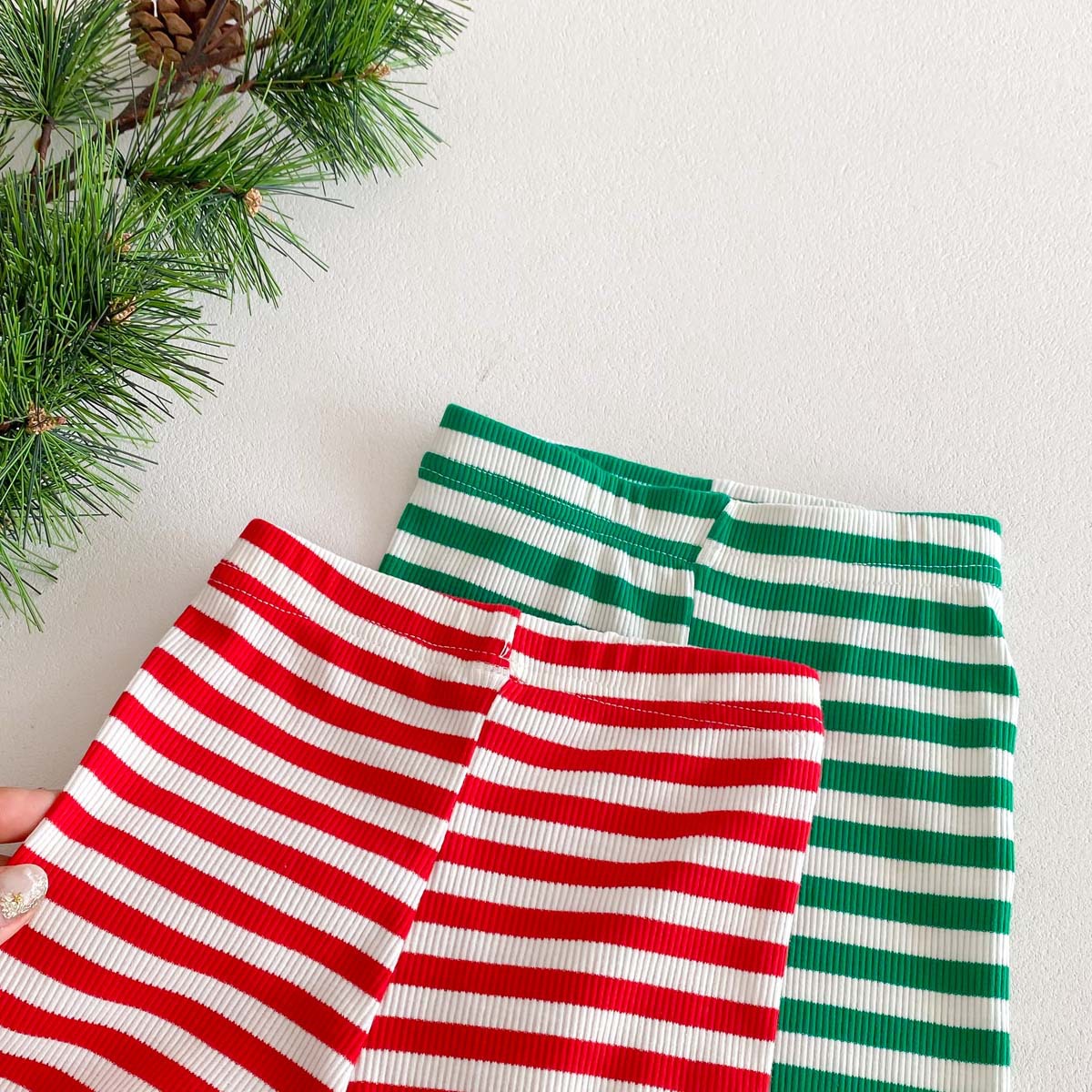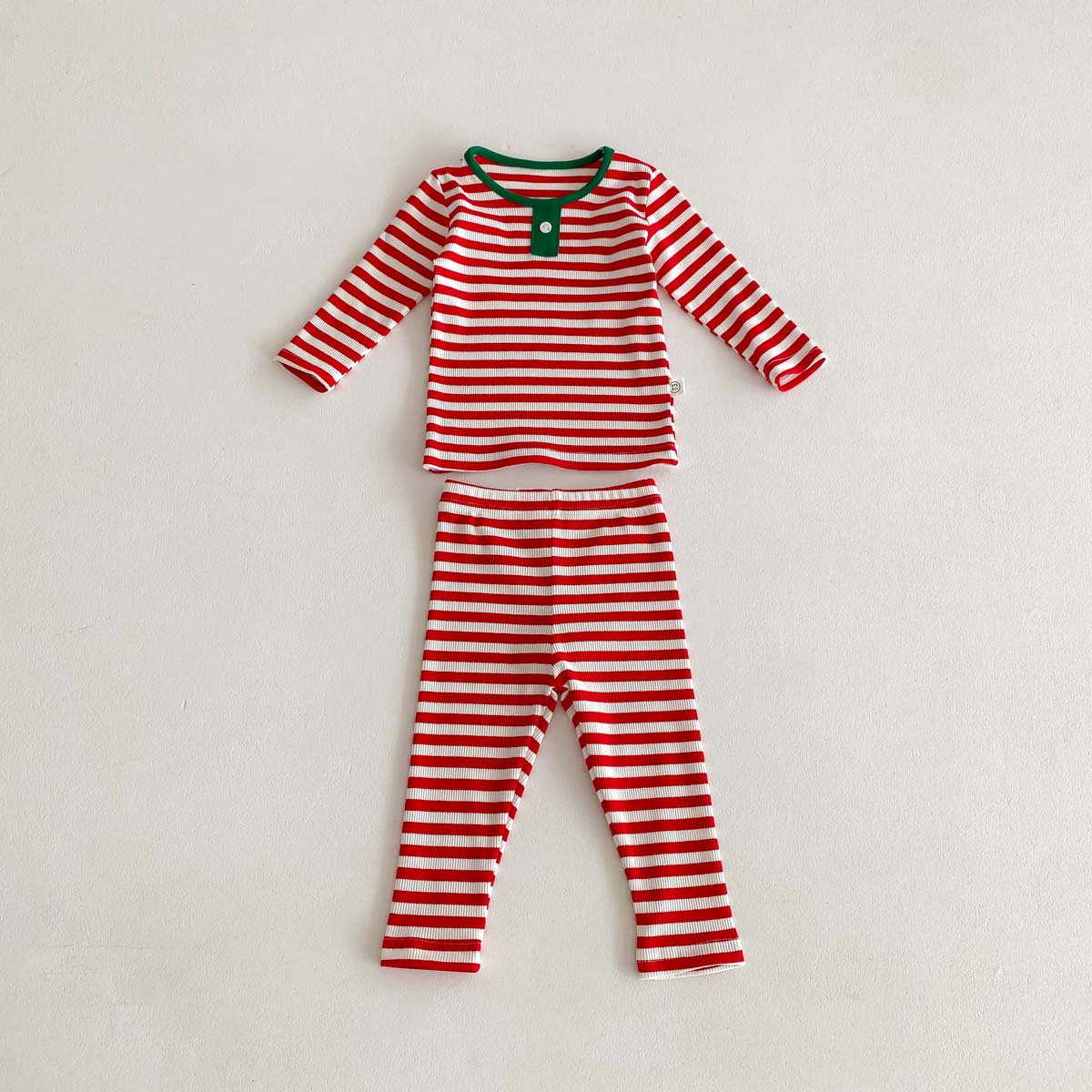 어린이 가을과 겨울 줄무늬 둥근 목 홈 웨어 세트 유아 크리스마스 옷 긴 소매 바지 바닥 투피스 세트