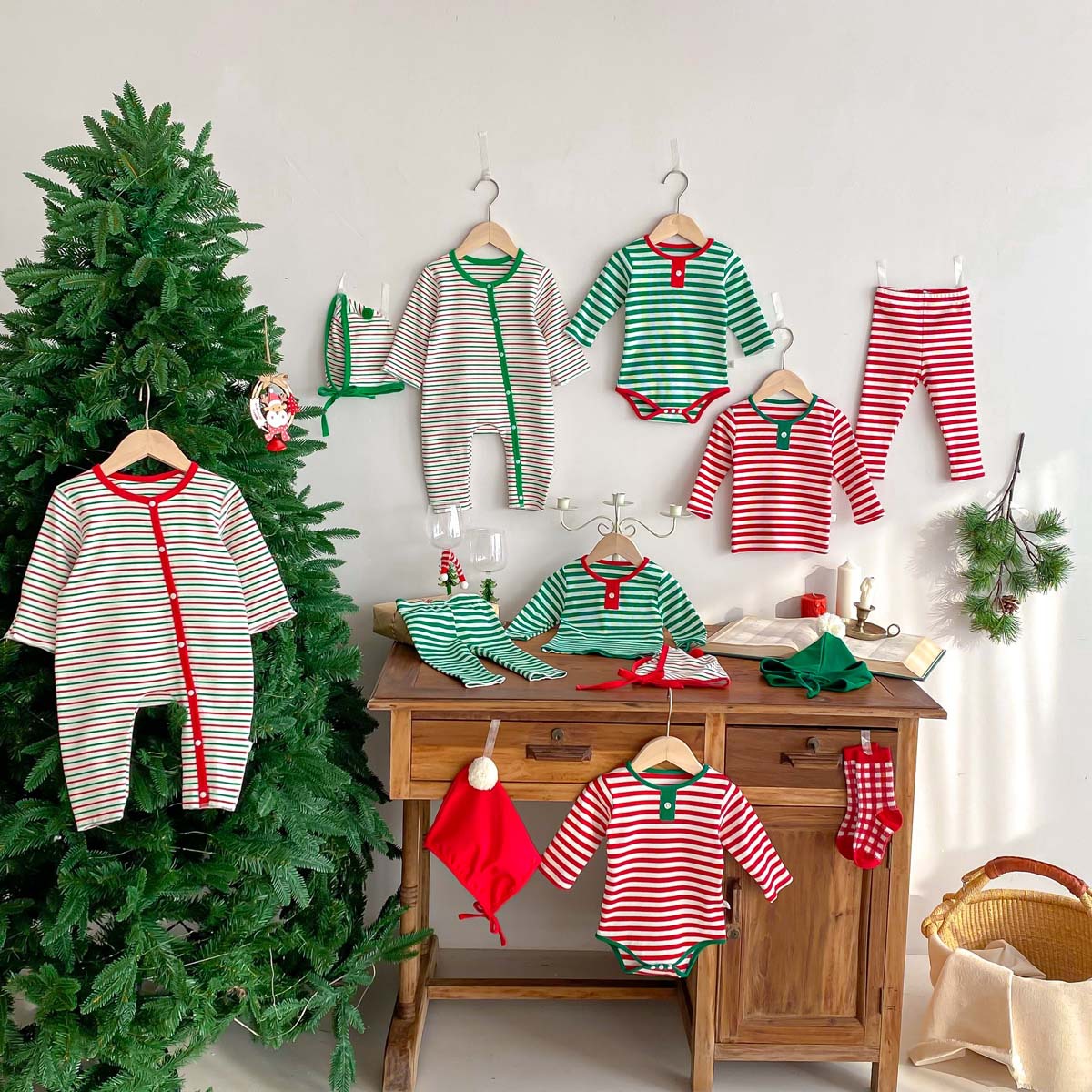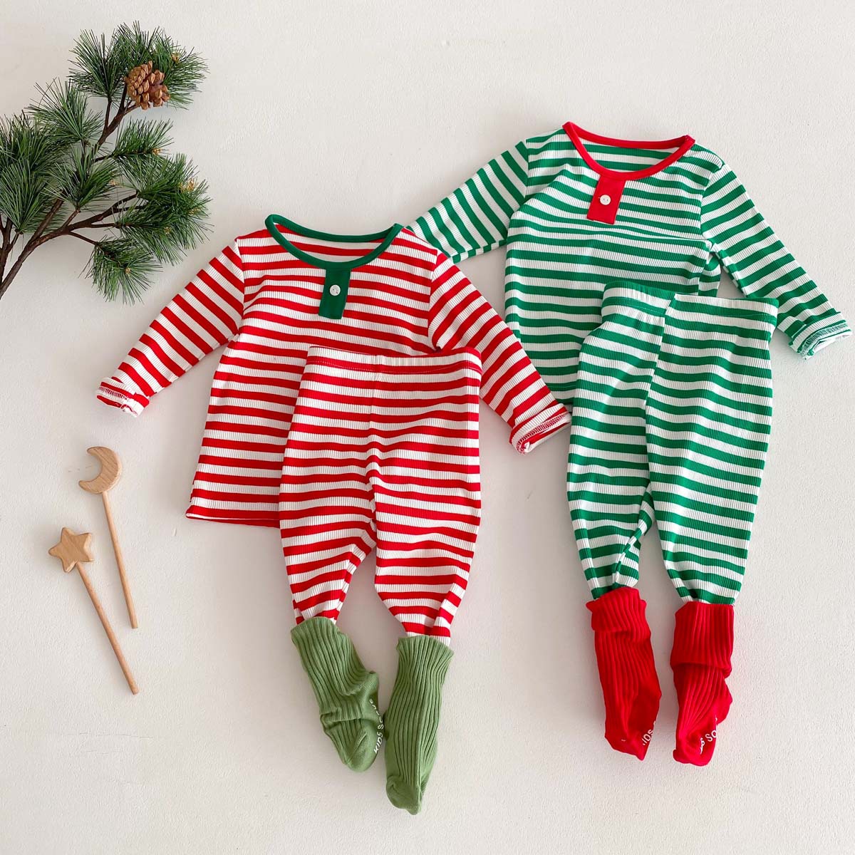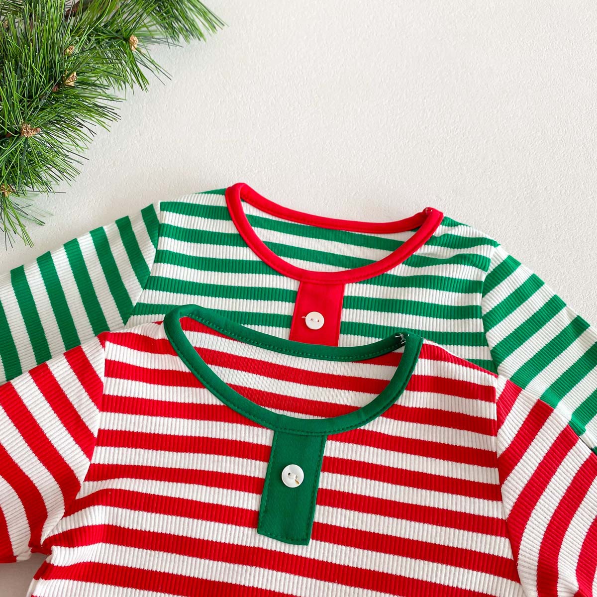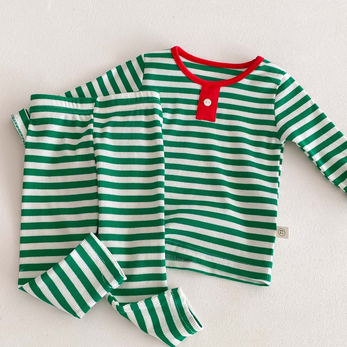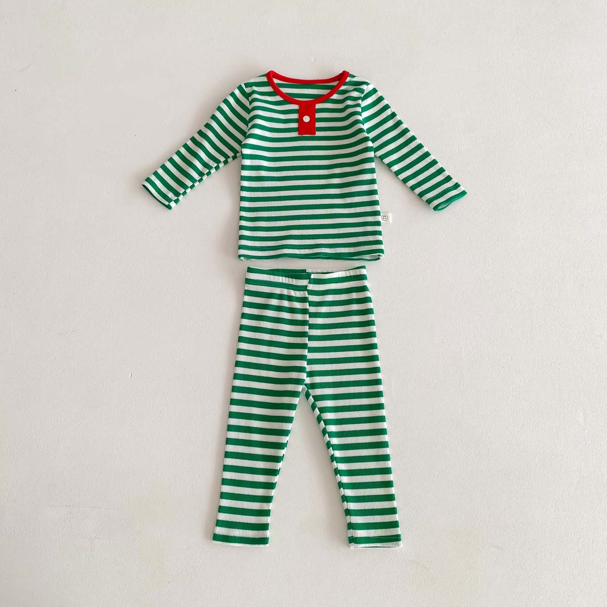 어린이 가을과 겨울 줄무늬 둥근 목 홈 웨어 세트 유아 크리스마스 옷 긴 소매 바지 바닥 투피스 세트스토어 가기