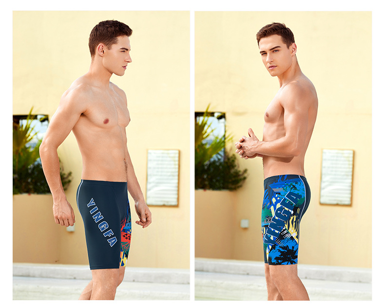 Yingfa 수영 트렁크 남성 복서 안티 당혹감 중간 길이의 온천 플러스 사이즈 전문적인 빠른 건조 인쇄 수영 트렁크