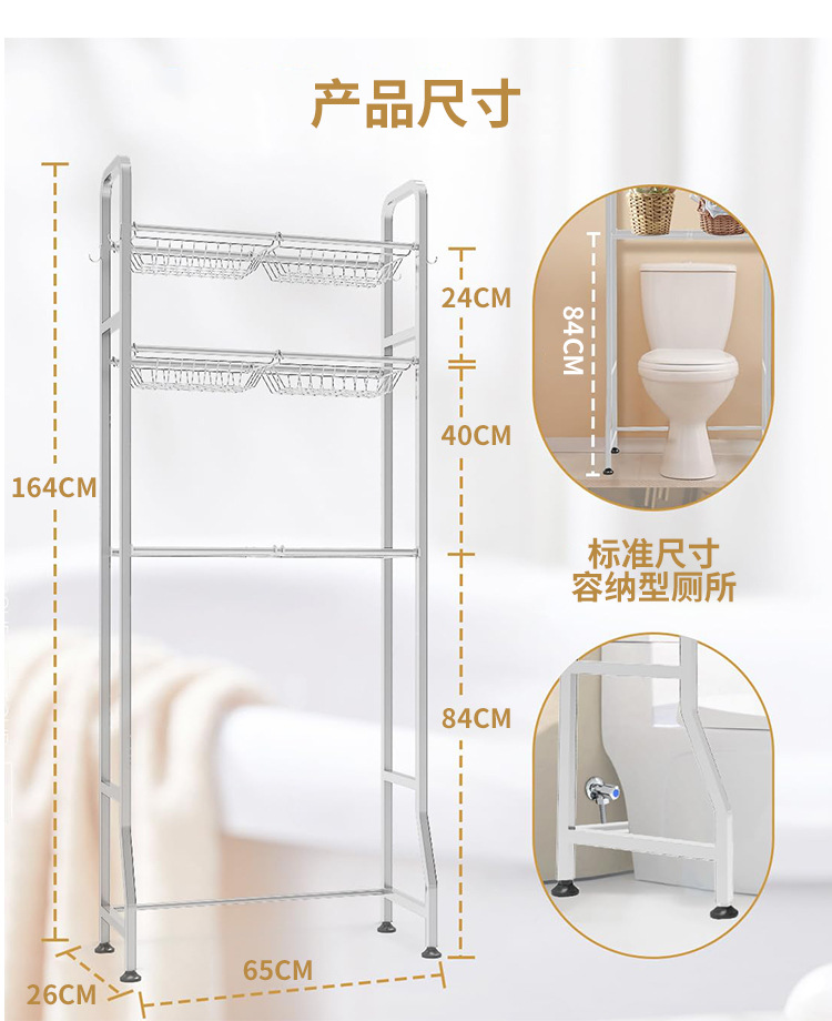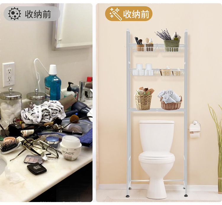 바닥에서 천장까지 이어지는 다층 욕실 욕실 수납 선반 변기 위의 선반 세탁기 변기 욕실 수납 용품스토어 가기