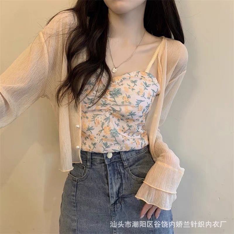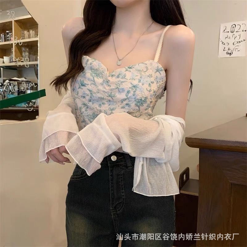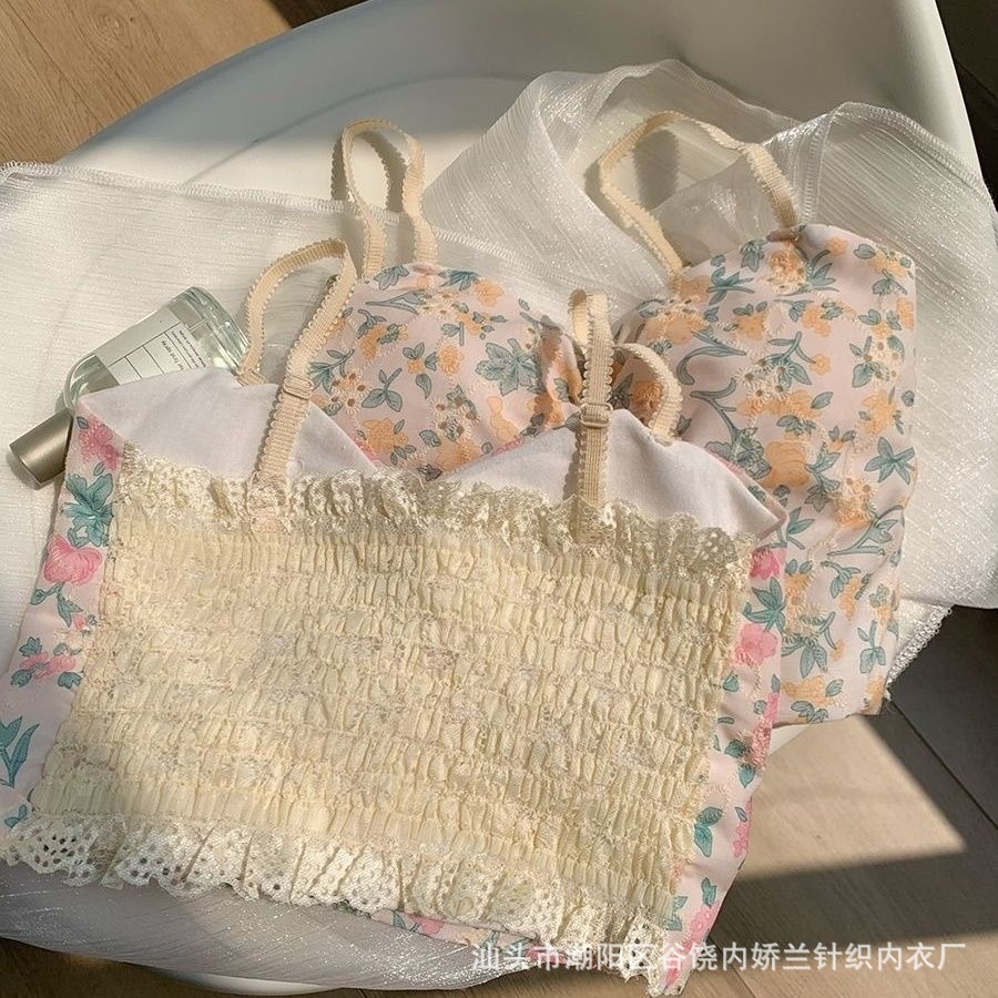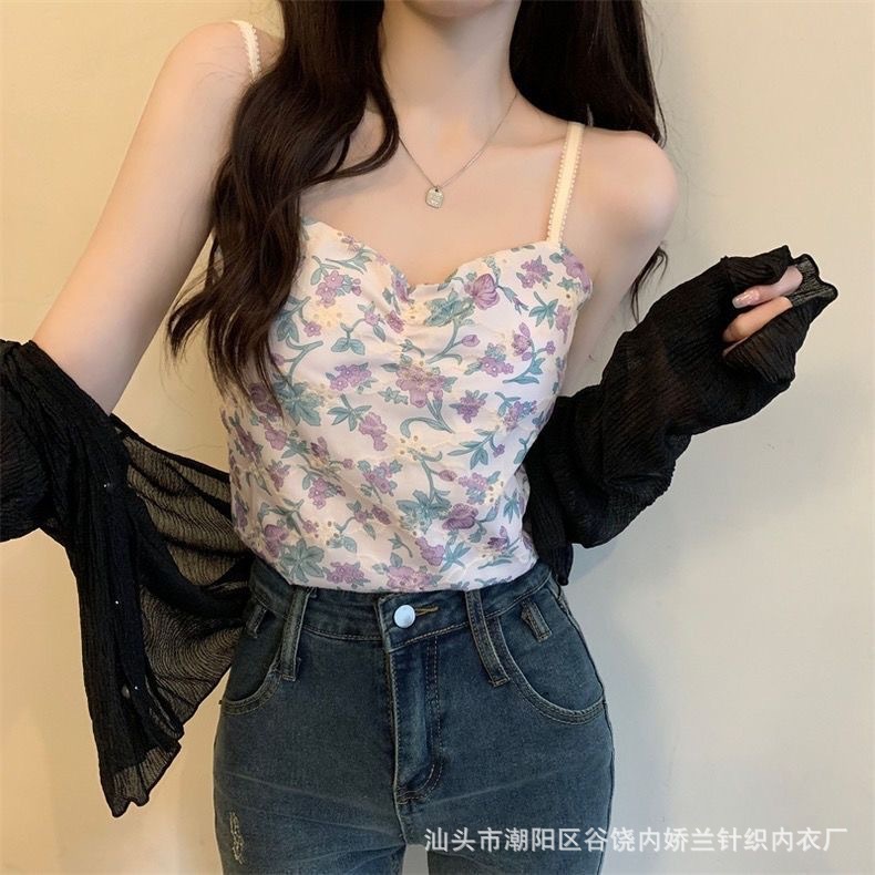 가슴 패드와 여성의 꽃 캐미솔 여름 달콤한 섹시한 뜨거운 소녀 순수한 욕망 짧은 올 매치 얇은 탑스토어 가기