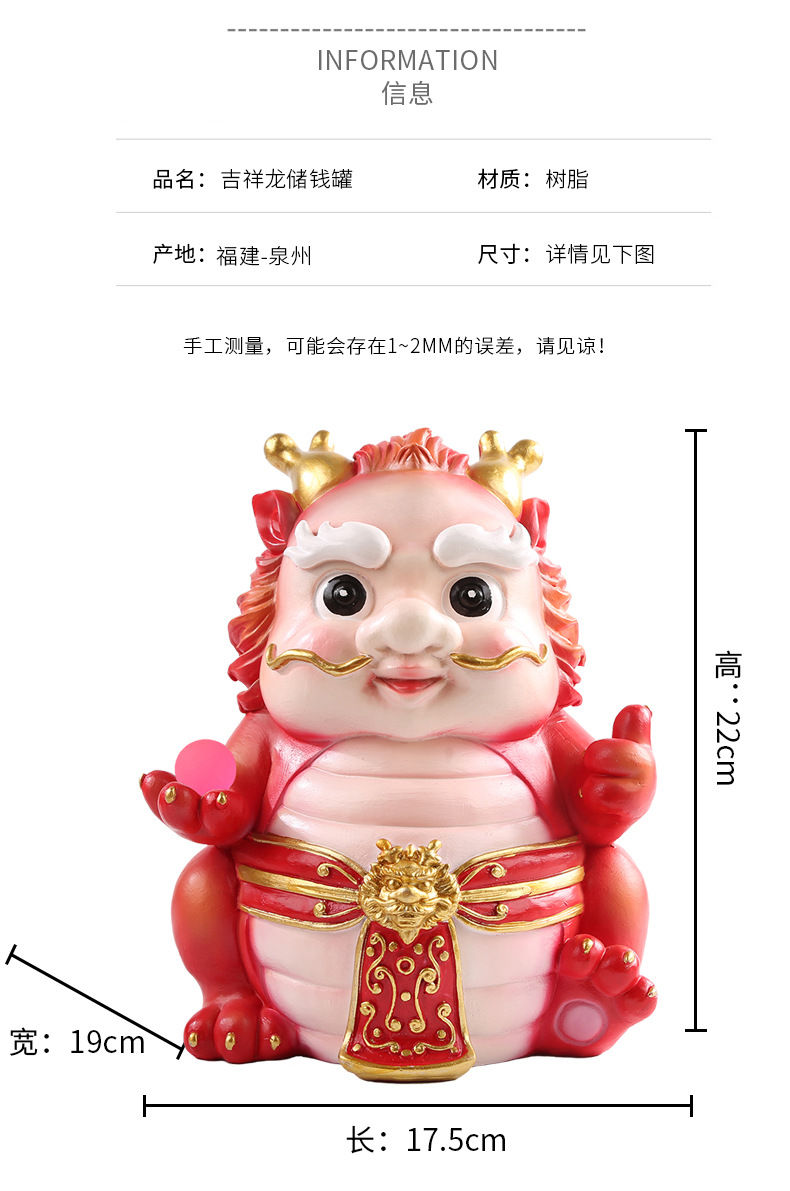 드래곤 길조 축복 가정 장식 창조적 인 큰 용량은 큰 저축 돼지 저금통 어린이 소년 소녀만을 입력 할 수 있습니다.