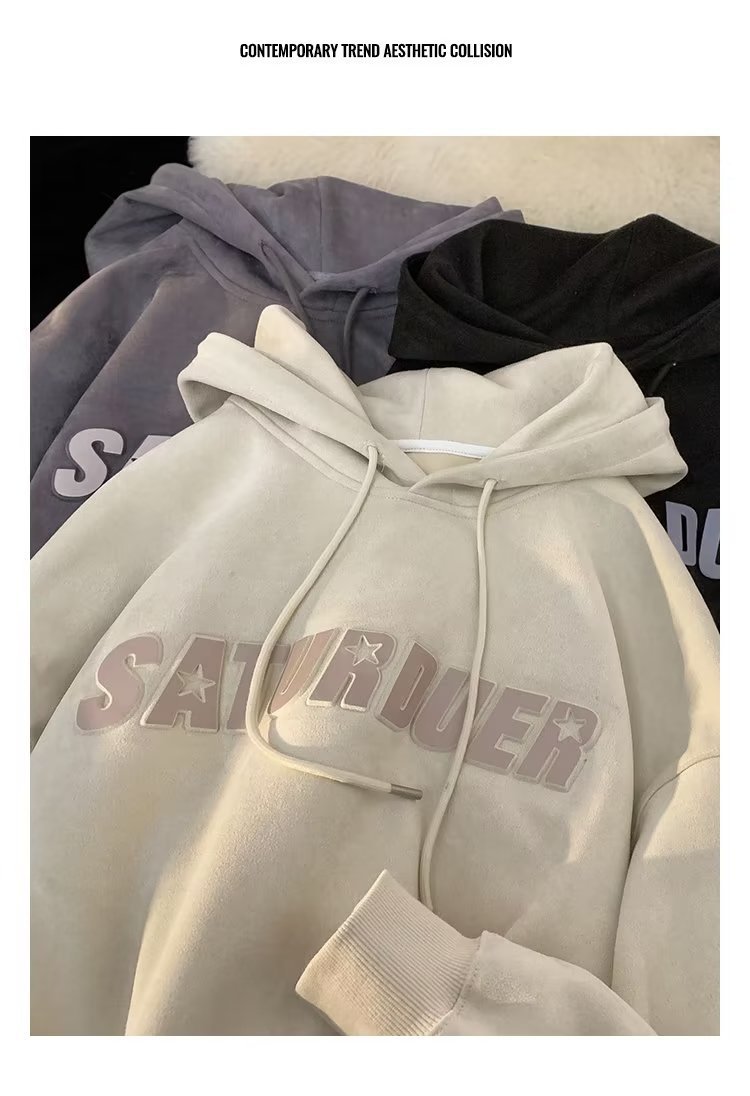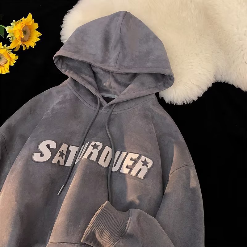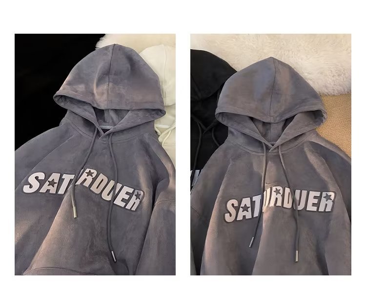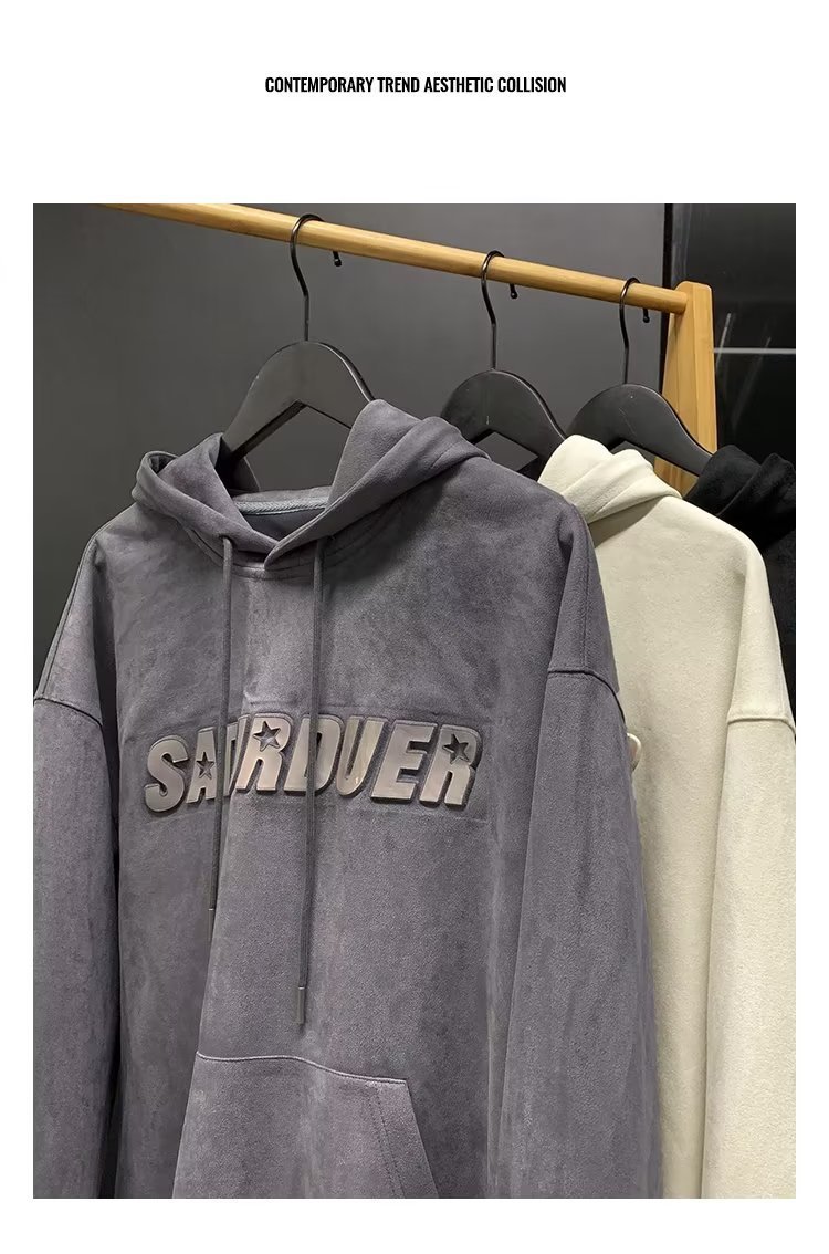 스웨이드 후드 스웨터 남성 봄과 가을 미국 패션 브랜드 무거운 뻣뻣한 코트는 이른 가을 신상을 느낍니다.스토어 가기
