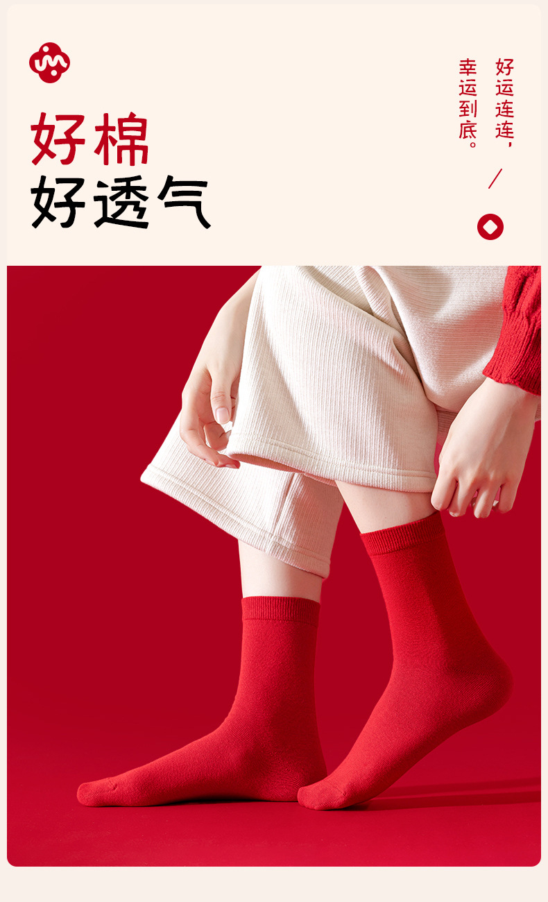 출생 축제 새해 행운의 양말 밝은 빨간색 양말 여성 스타킹 겨울 중반 종아리 길이 양말 결혼 선물 새해 양말