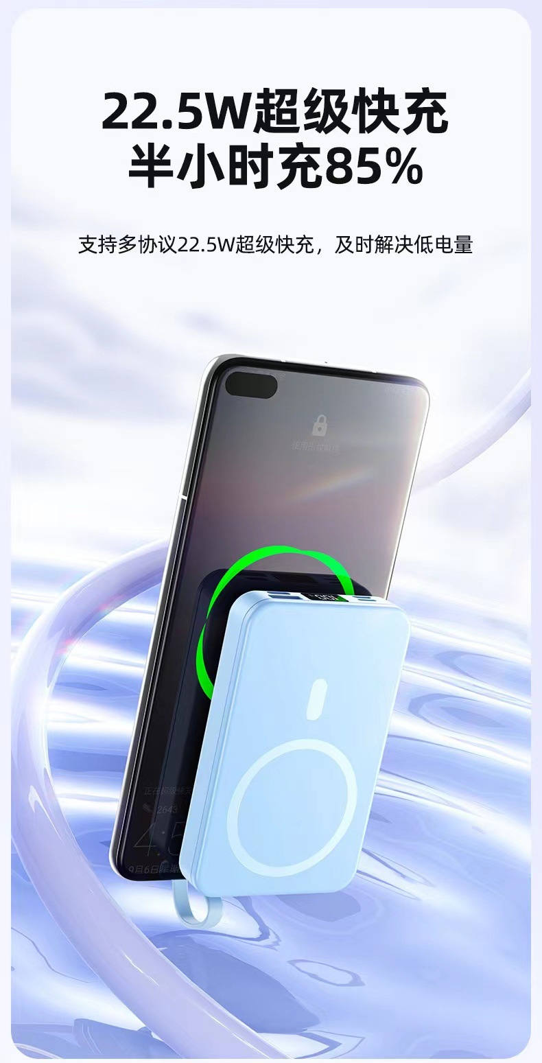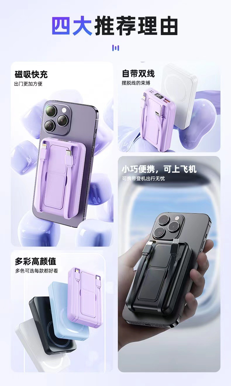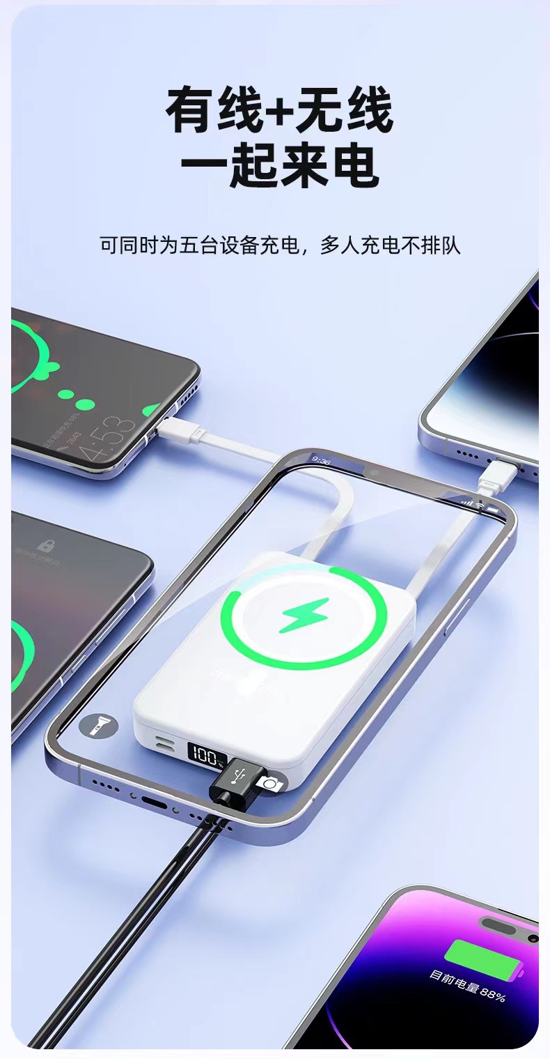 자석 충전기 내장 케이블 PD 초고속 충전 소형 휴대용 20000mAh 휴대폰 모바일 파워 뱅크 맞춤 제작스토어 가기