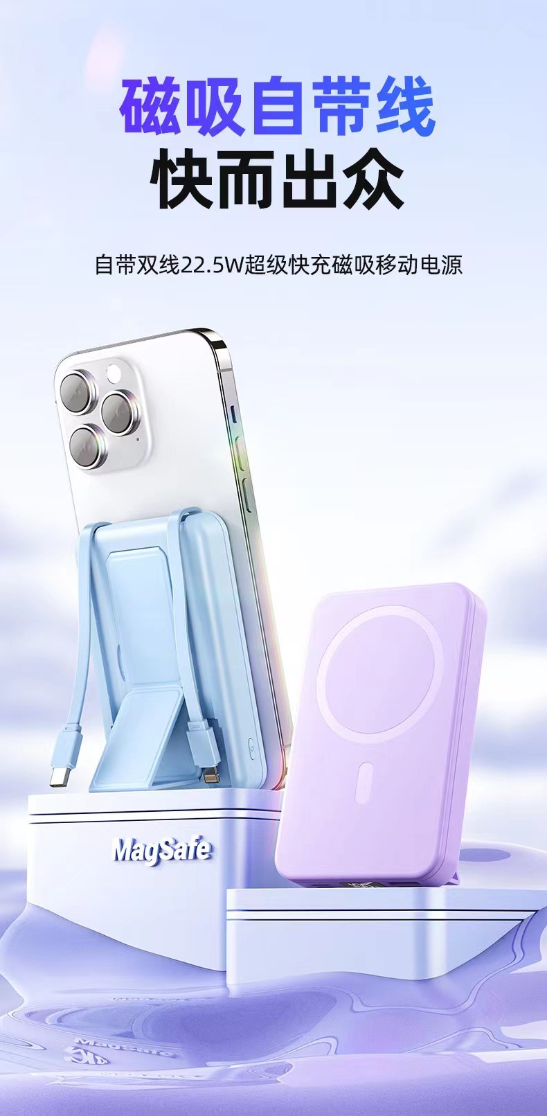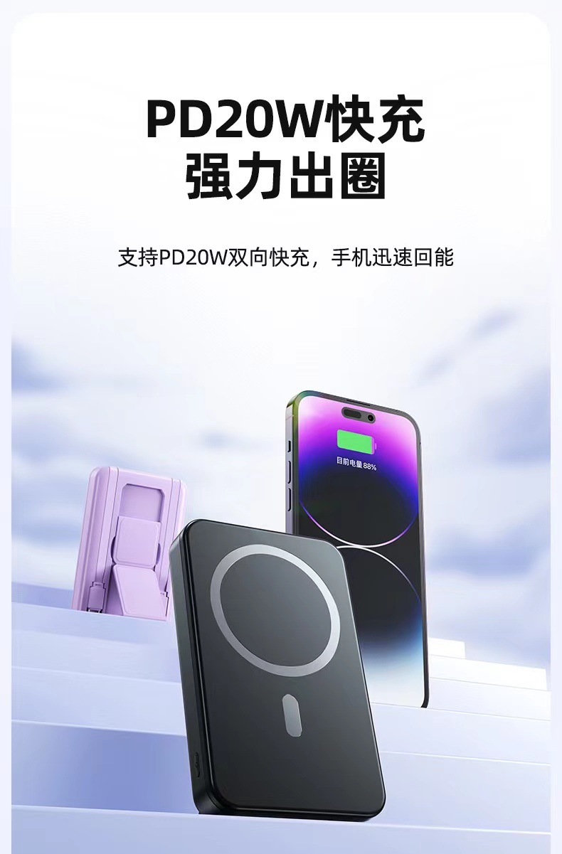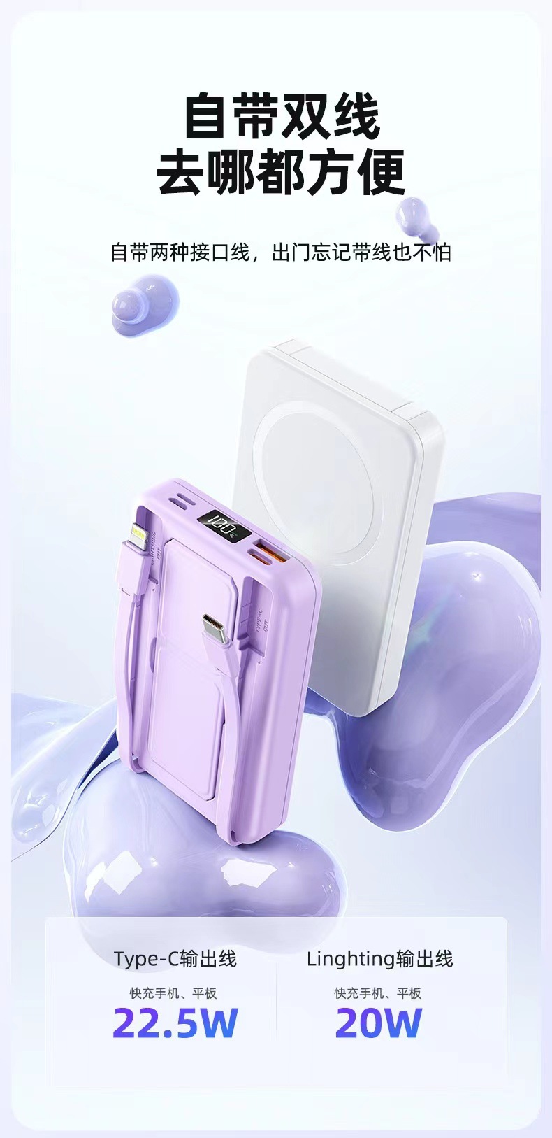 자석 충전기 내장 케이블 PD 초고속 충전 소형 휴대용 20000mAh 휴대폰 모바일 파워 뱅크 맞춤 제작스토어 가기