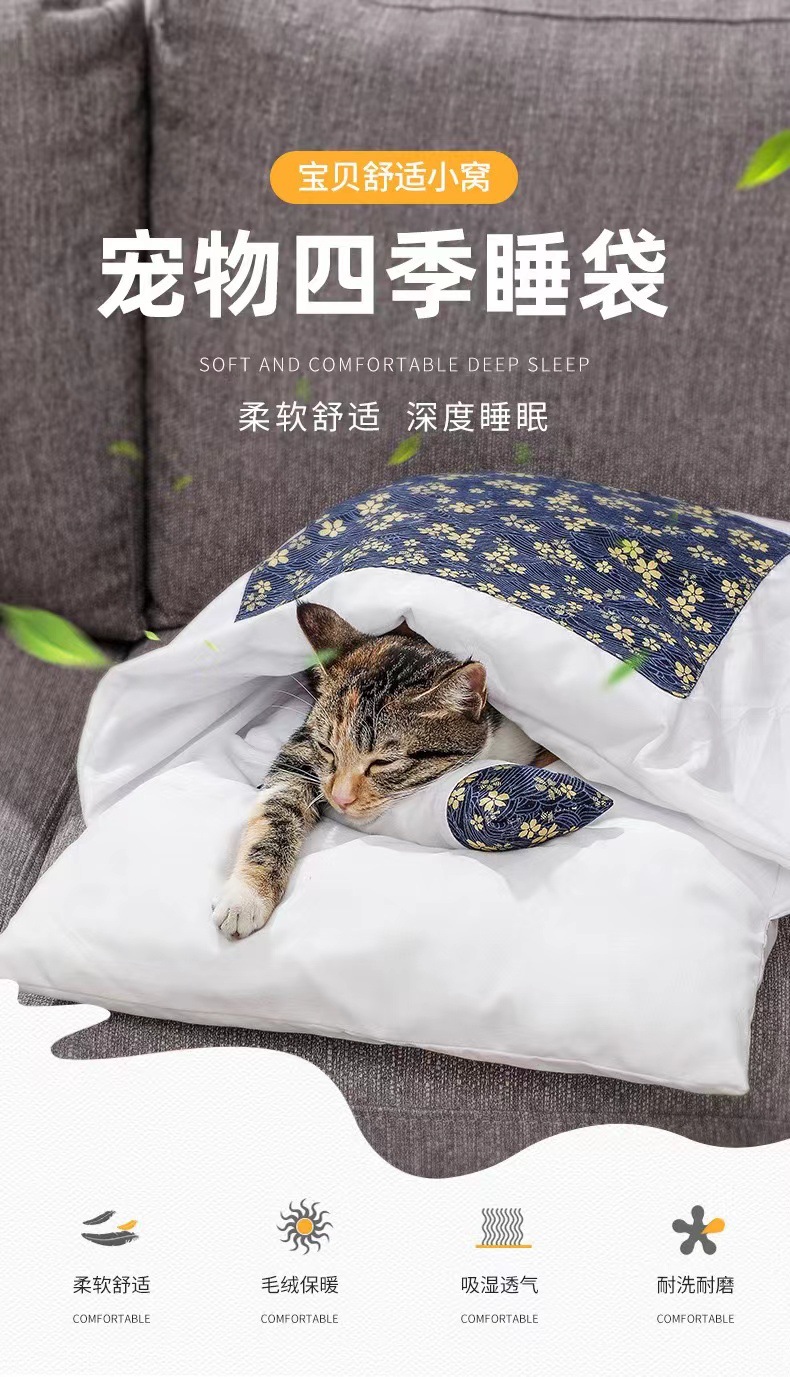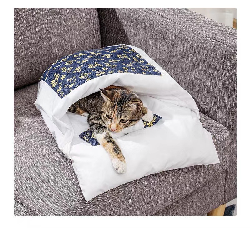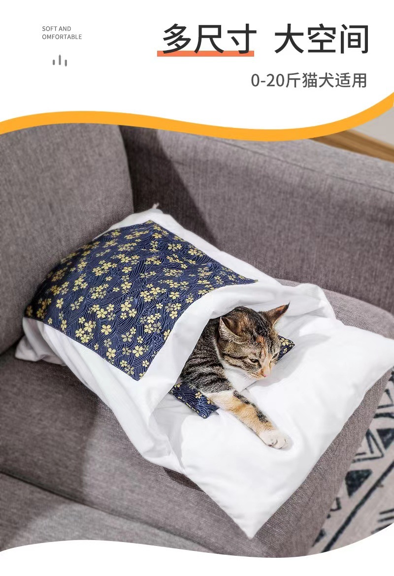 고양이 둥지 공장 공장 직접 판매 고양이 매트 겨울 겨울 따뜻한 애완 동물 퀼트 탈착식 및 빨 수있는 일본 고양이 침낭