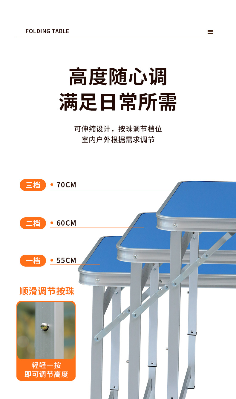 야외 접이식 테이블과 의자 알루미늄 합금 휴대용 테이블 조정 가능한 캠핑 식탁 야간 시장 스톨 간단한 전시 산업스토어 가기