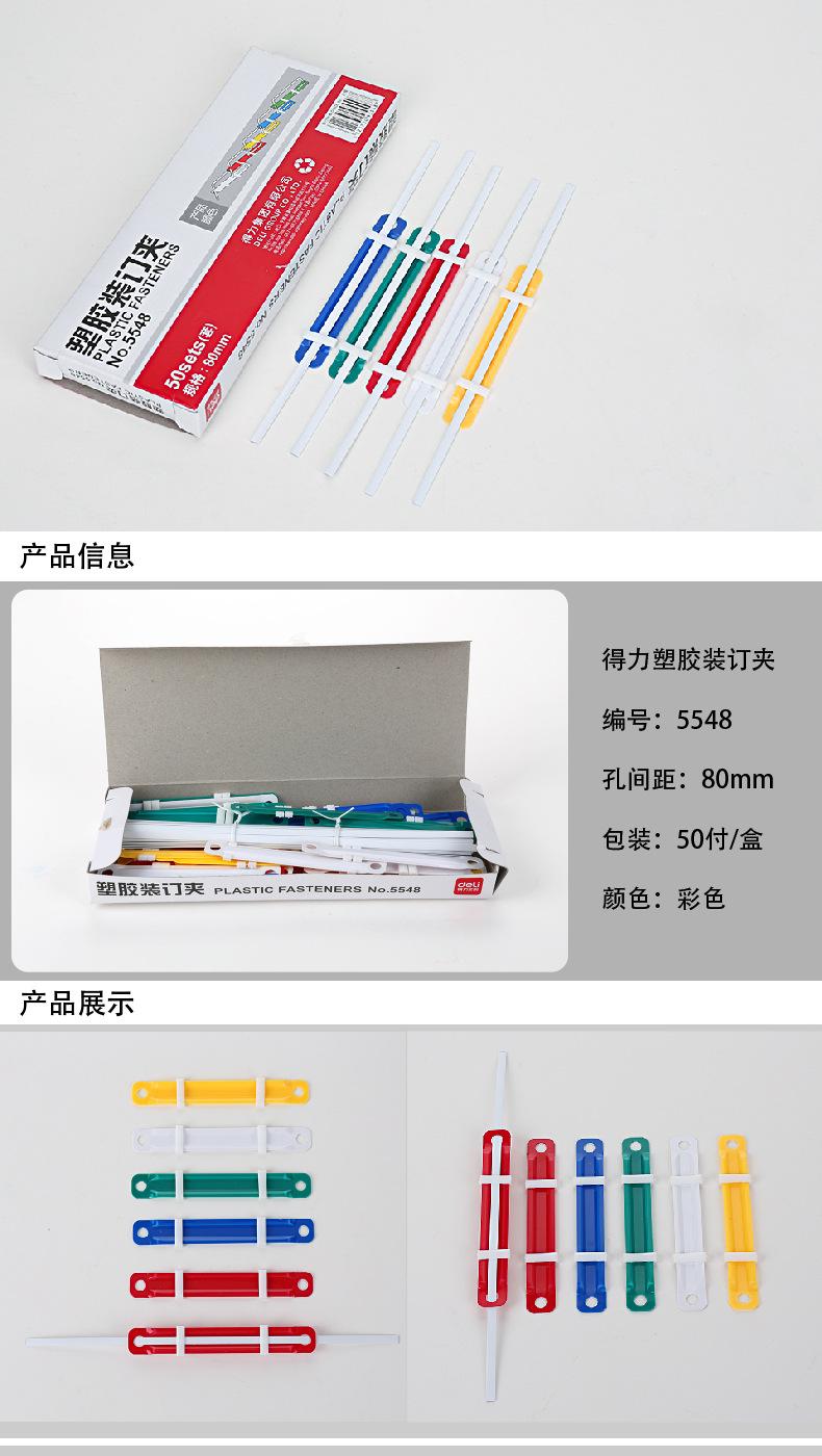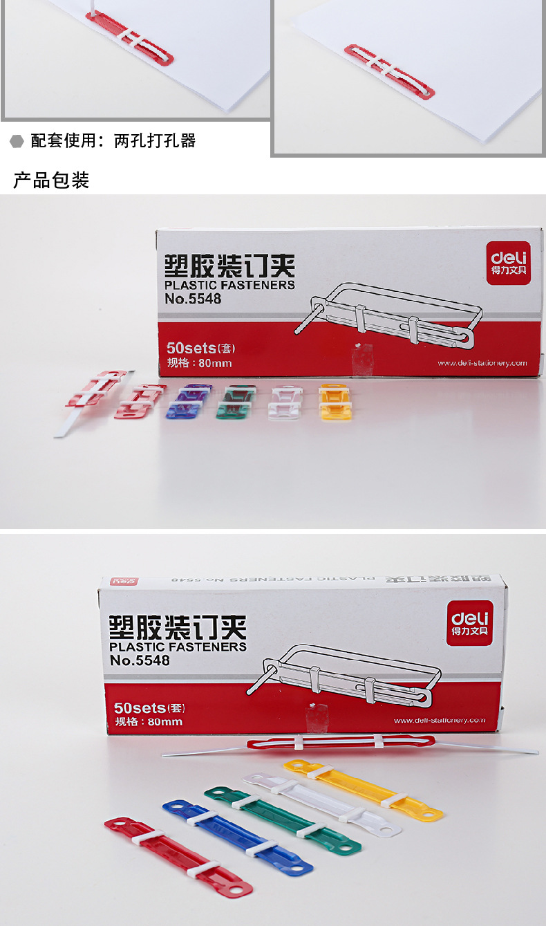 델리 5548 플라스틱 바인딩 클립 컬러 바인딩 클립 네일 2 홀 레이어링 금속 바인딩 펀치 바인딩 소모품