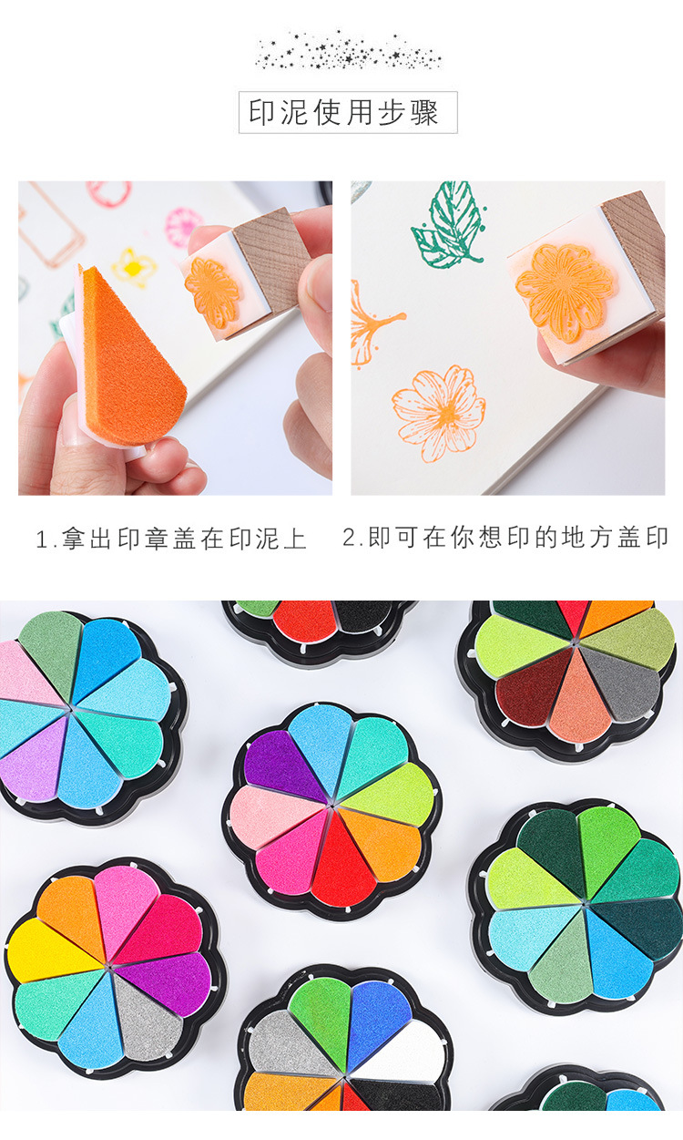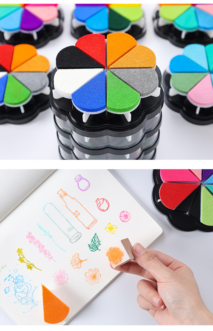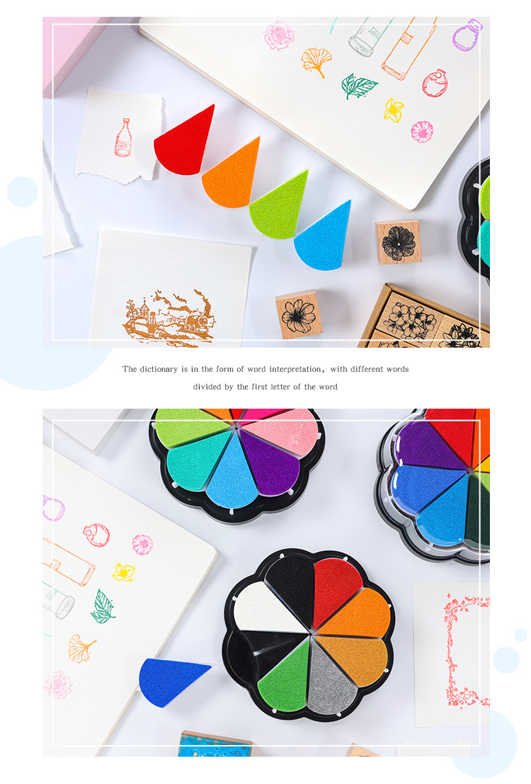 국경 색상 분리 가능한 8 색 꽃잎 물 방울 인쇄 테이블 사무실 특수 실리콘 씰 잉크 패드 diy 저널 고무 스탬프스토어 가기