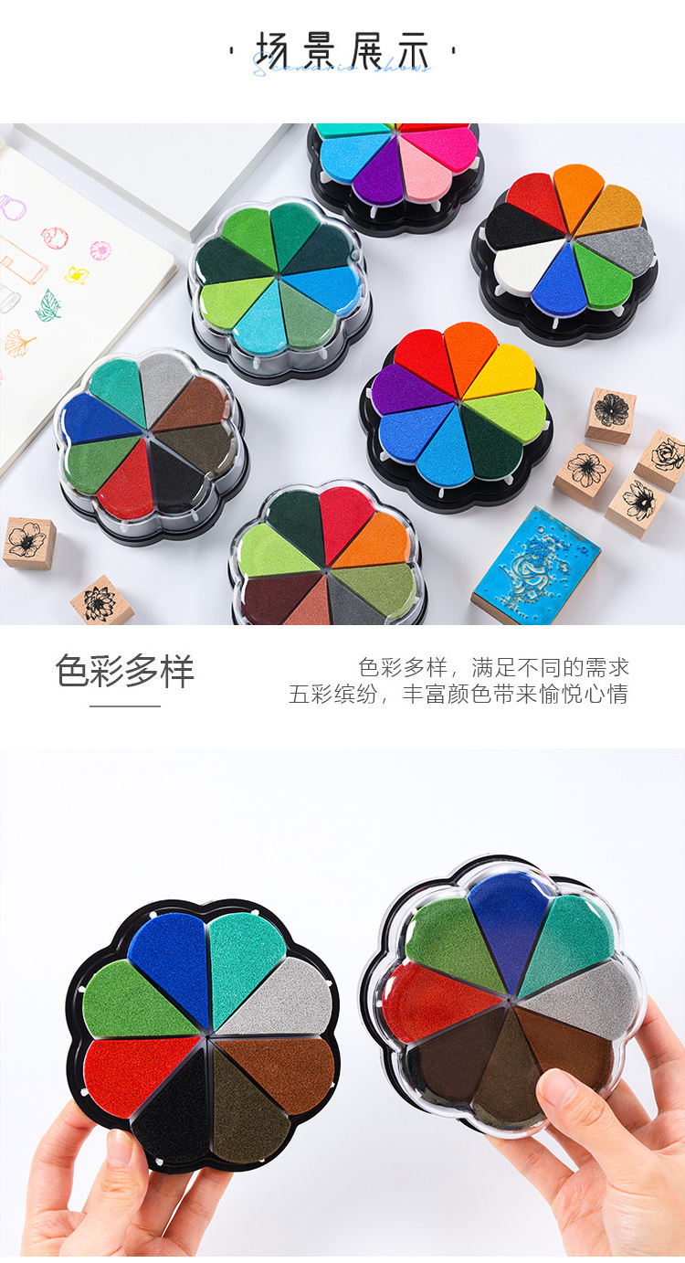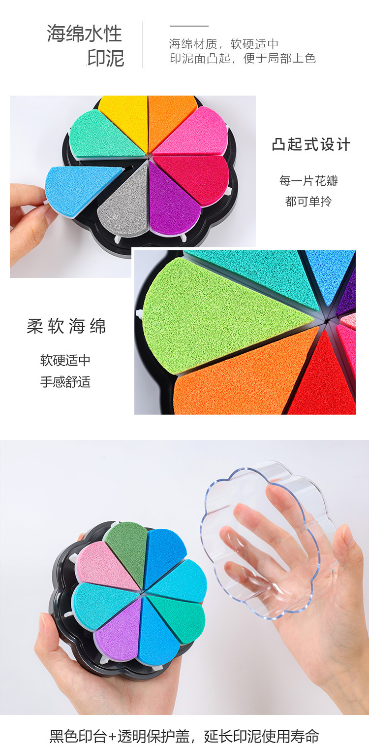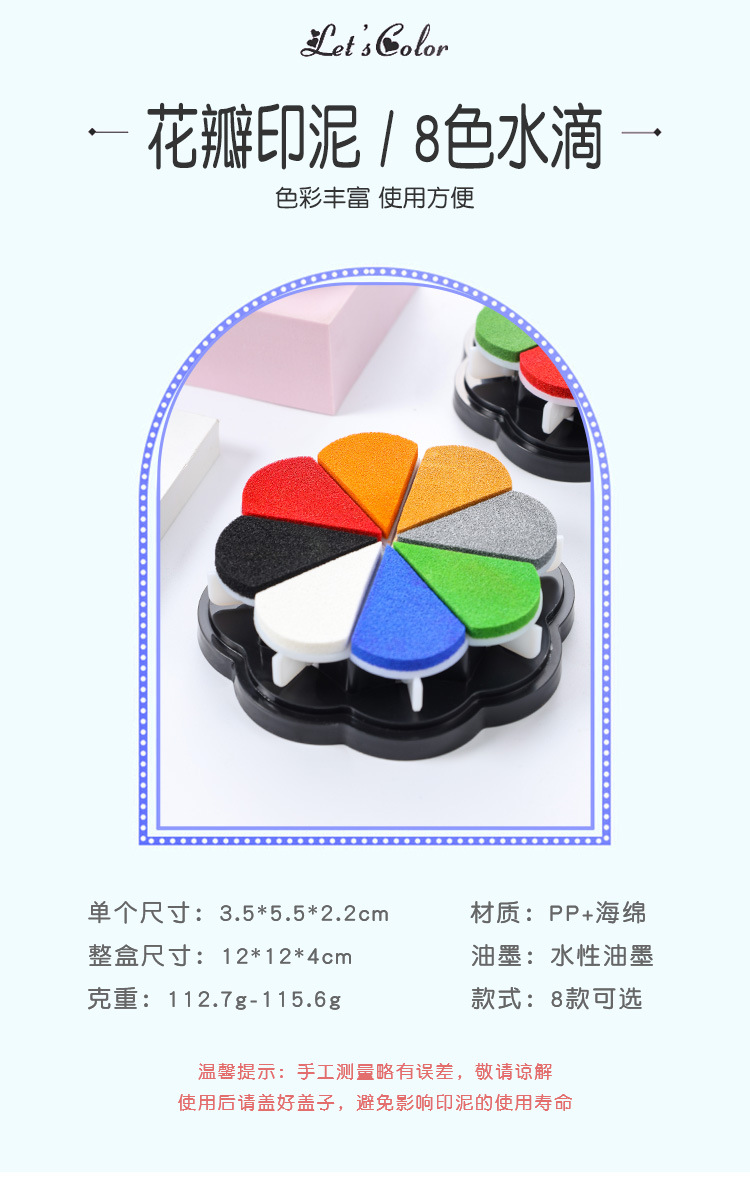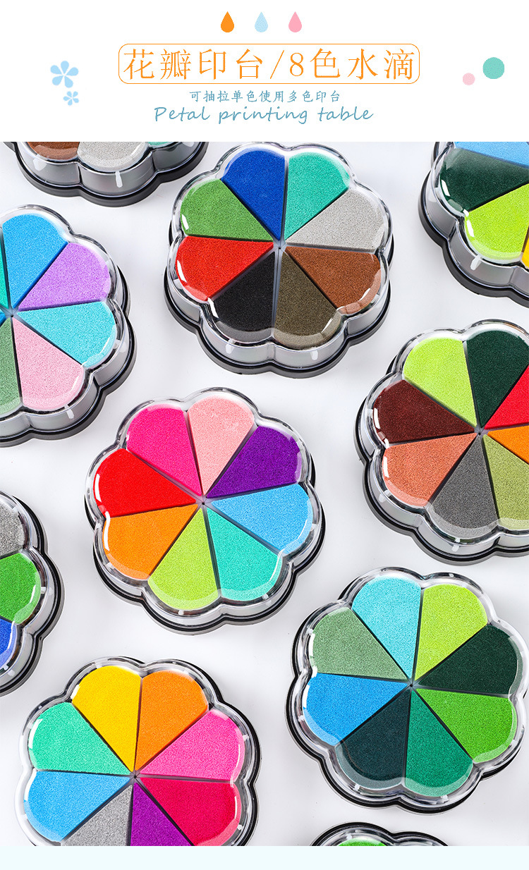 국경 색상 분리 가능한 8 색 꽃잎 물 방울 인쇄 테이블 사무실 특수 실리콘 씰 잉크 패드 diy 저널 고무 스탬프