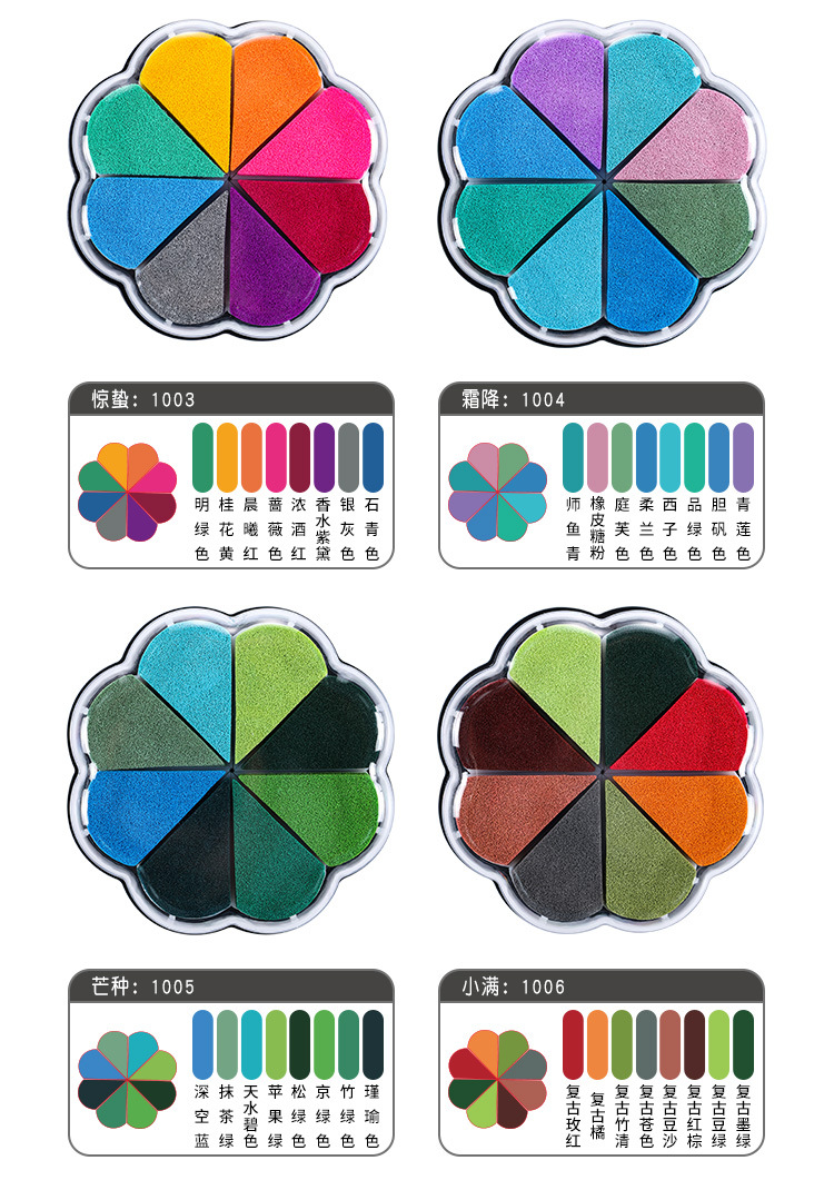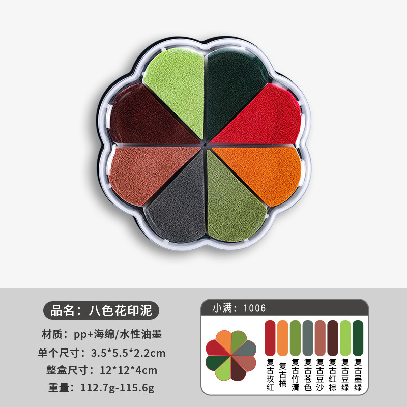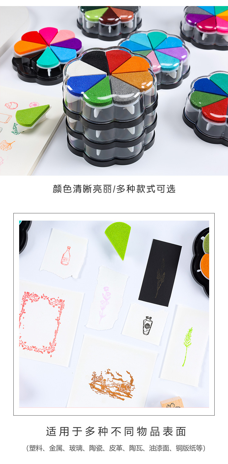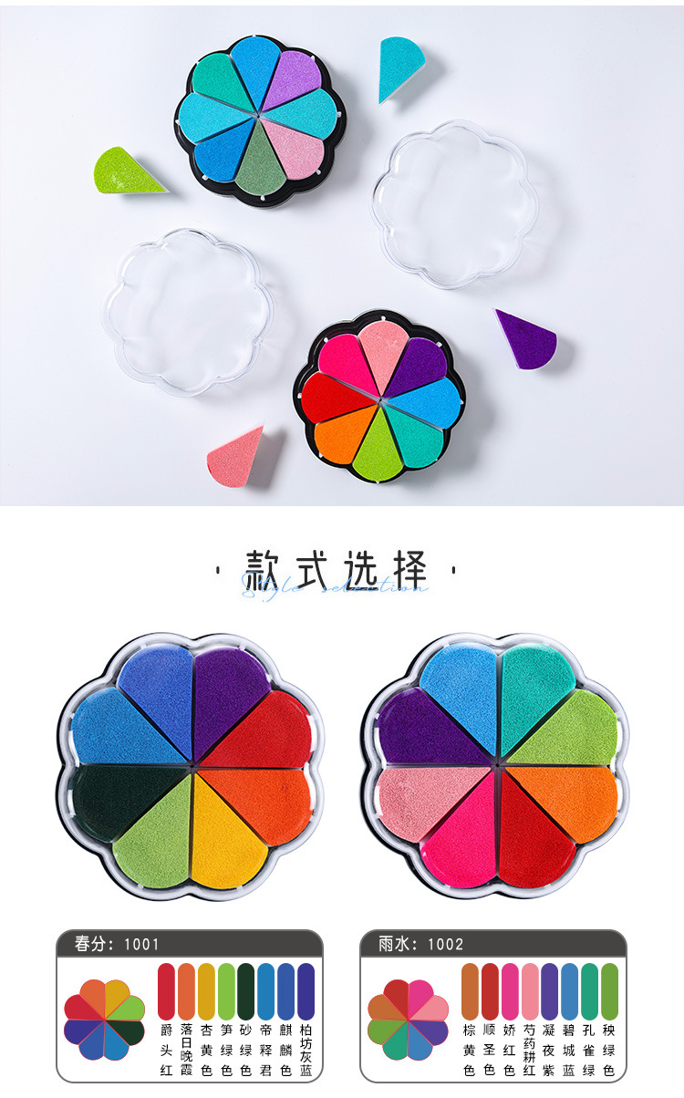국경 색상 분리 가능한 8 색 꽃잎 물 방울 인쇄 테이블 사무실 특수 실리콘 씰 잉크 패드 diy 저널 고무 스탬프