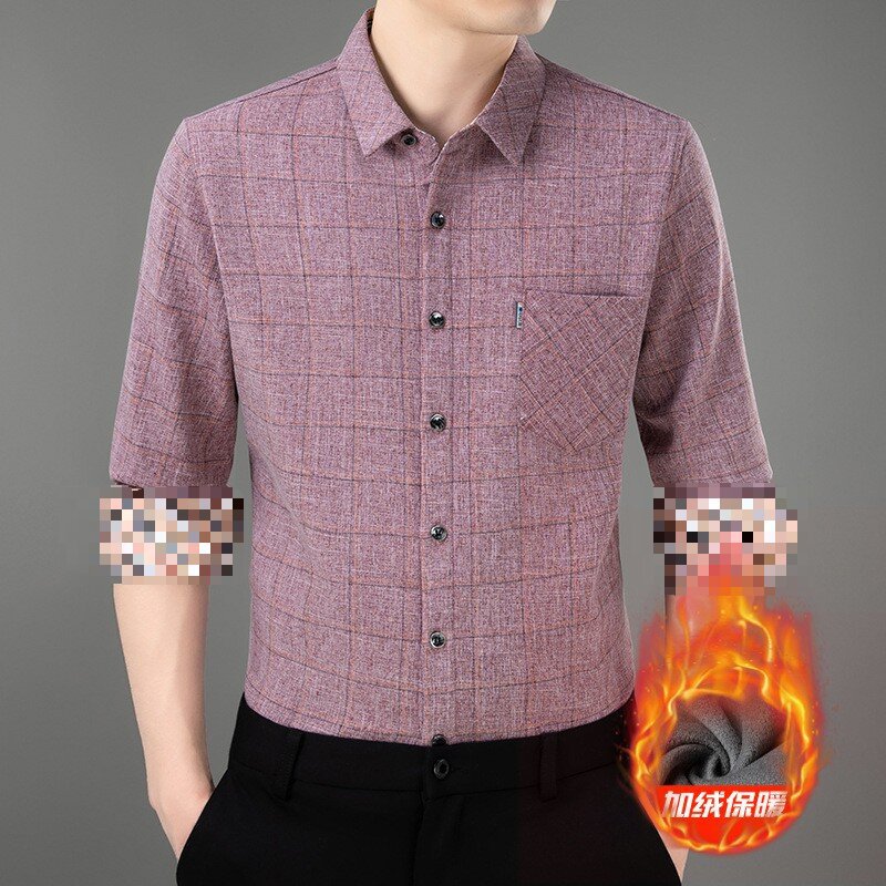 겨울 기모 두꺼운 셔츠 남자의 긴팔 체크 무늬 중년 및 노인 남성의 느슨한 캐주얼 아빠 따뜻한 셔츠 옷