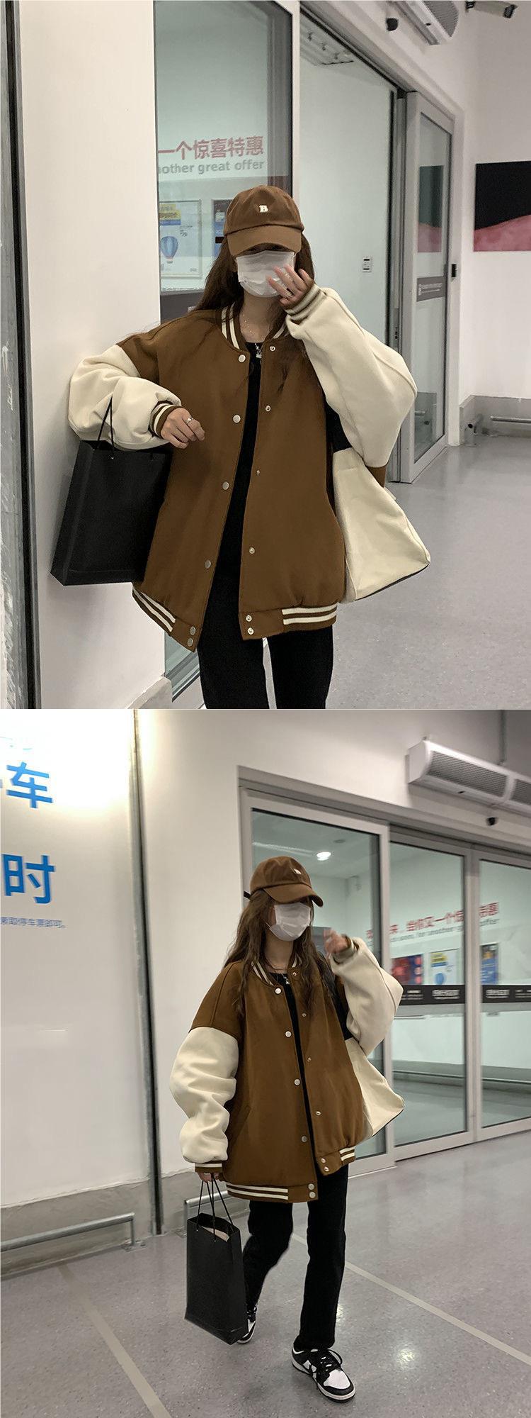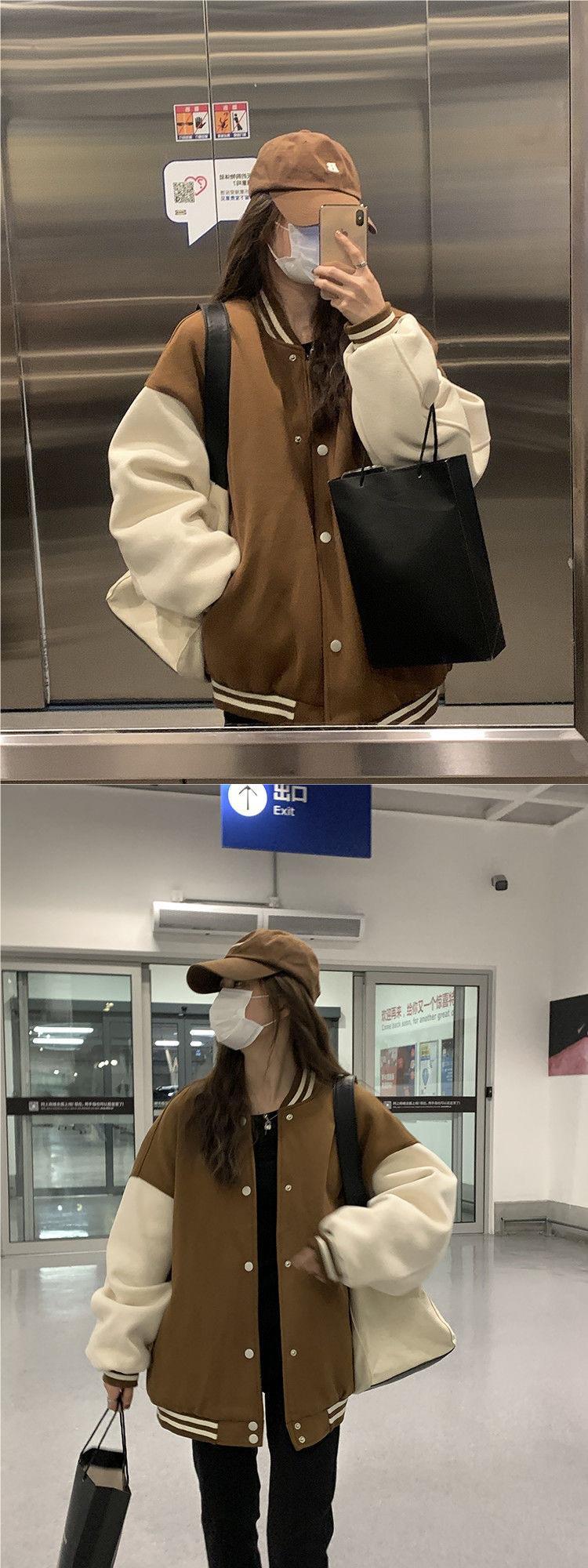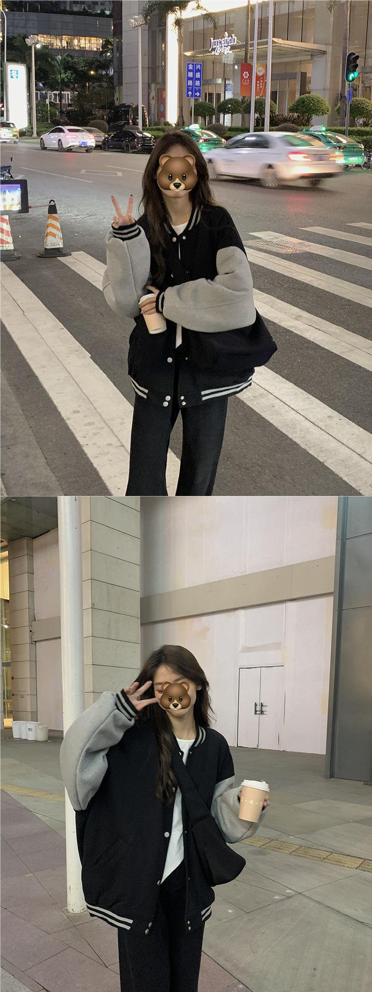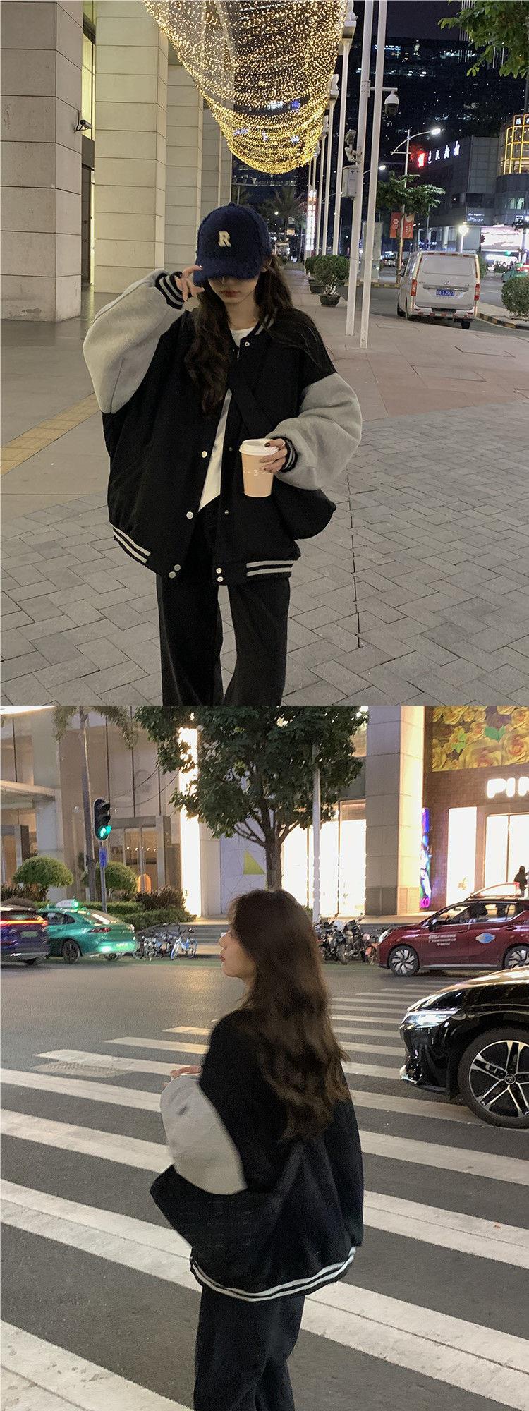원피스 배달 기모 두꺼운 야구 유니폼 남녀 대학 스타일 한국식 트렌디 한 플러스 사이즈 재킷 스웨터 재킷 도매
