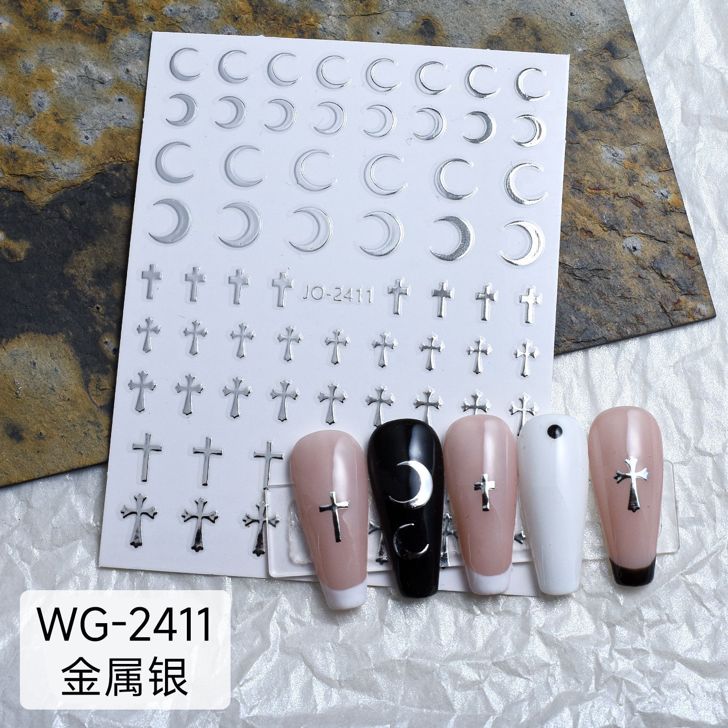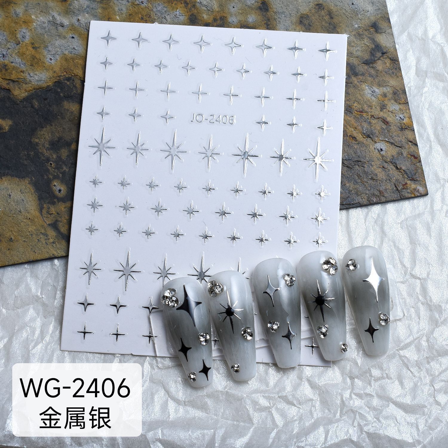 인터넷 인기 미러 실버 네일 스티커 신상품 오각별 하트 십자가 작은 패턴 네일 스티커 도매