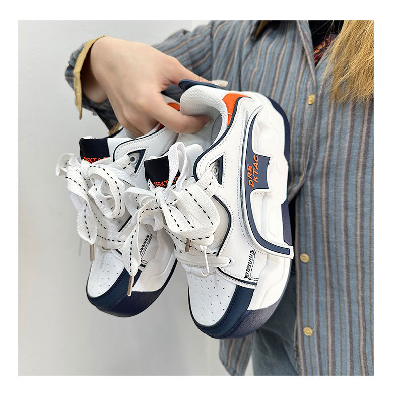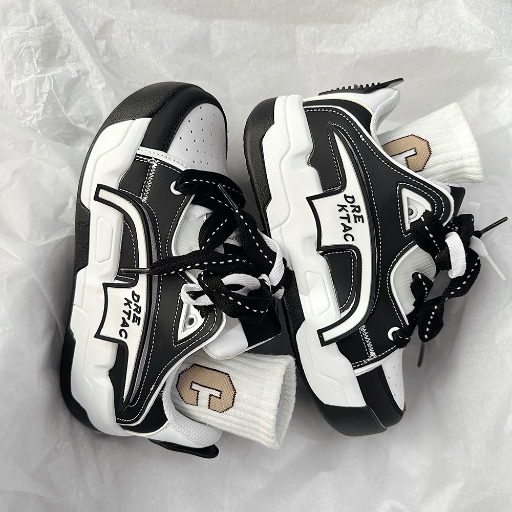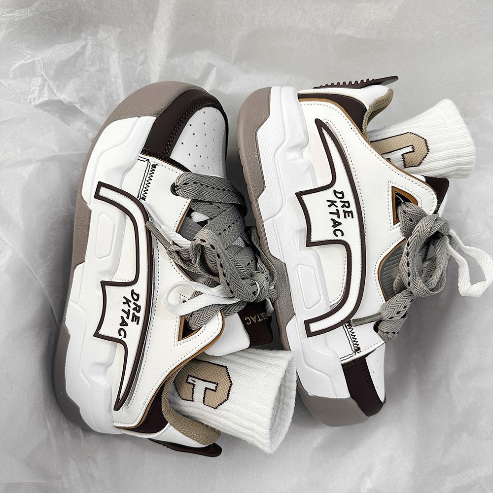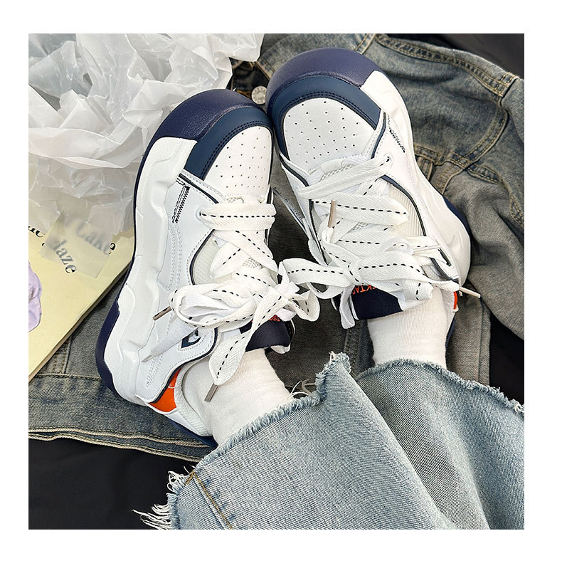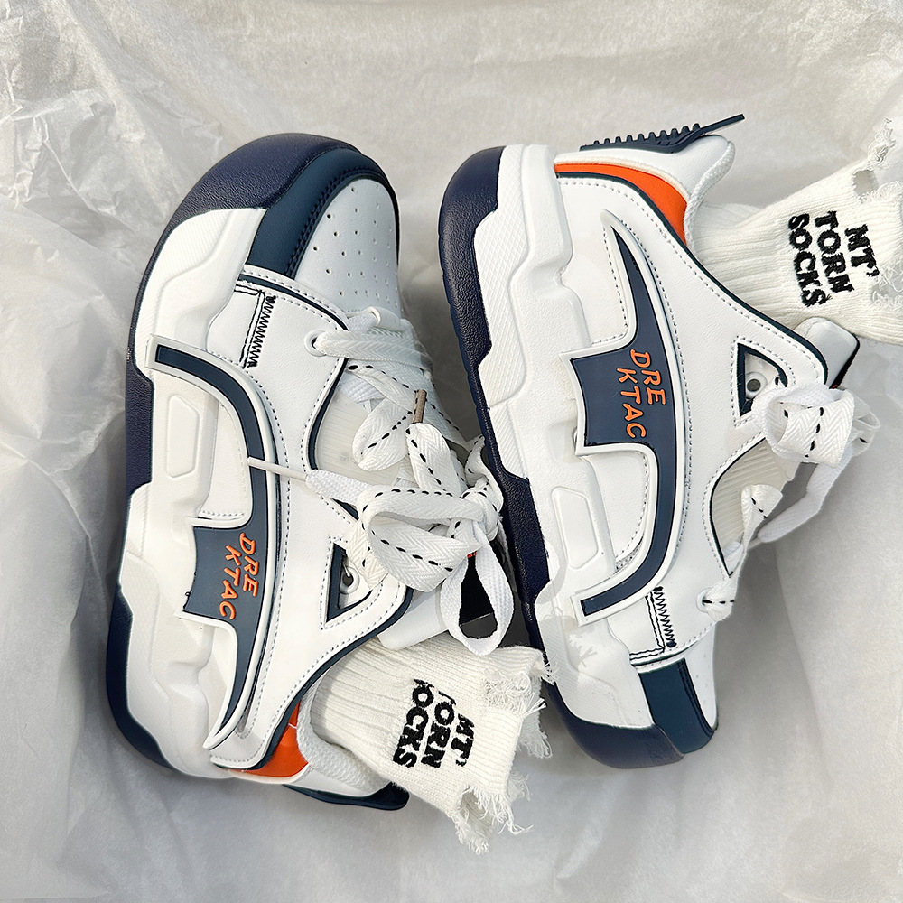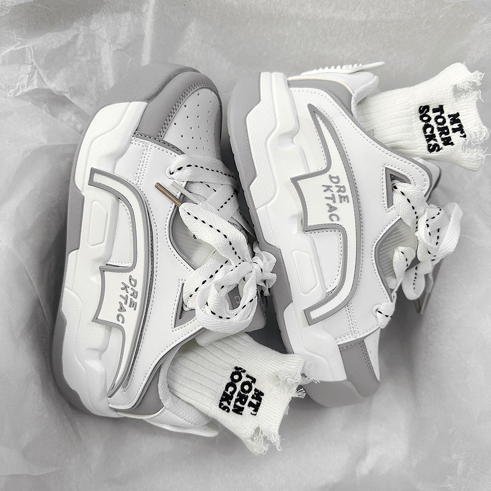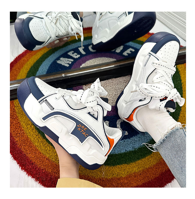 두꺼운 단독 높이 증가 화이트 신발 여성 Ins 슈퍼 파이어 올 매치 홍콩 스타일 스포츠 캐주얼 빵 신발 남성 2023 새로운 유행 신발스토어 가기