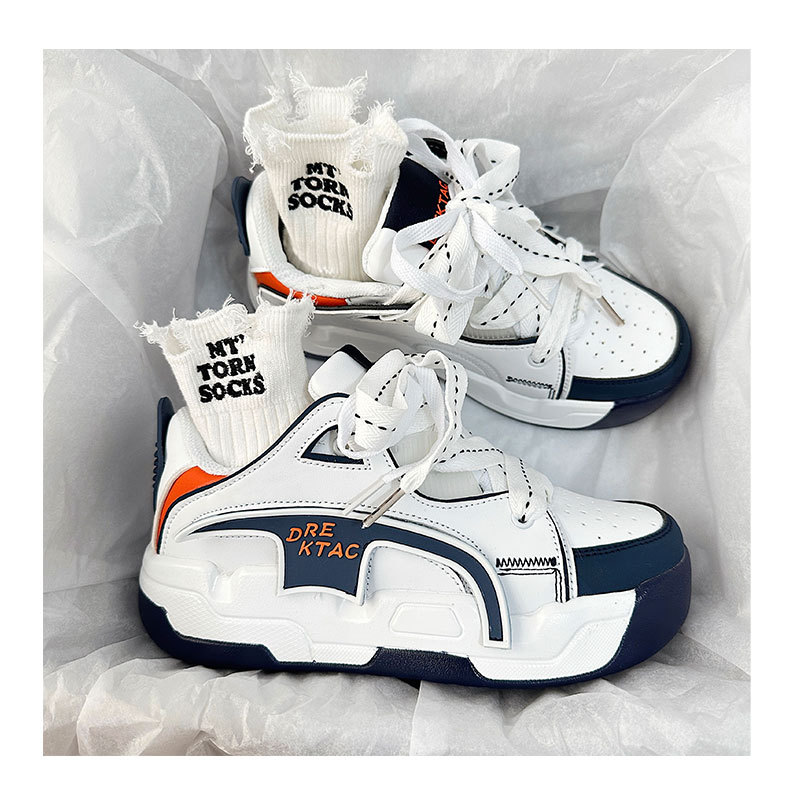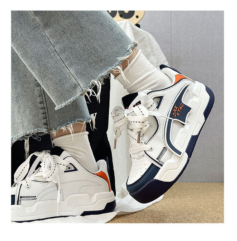 두꺼운 단독 높이 증가 화이트 신발 여성 Ins 슈퍼 파이어 올 매치 홍콩 스타일 스포츠 캐주얼 빵 신발 남성 2023 새로운 유행 신발