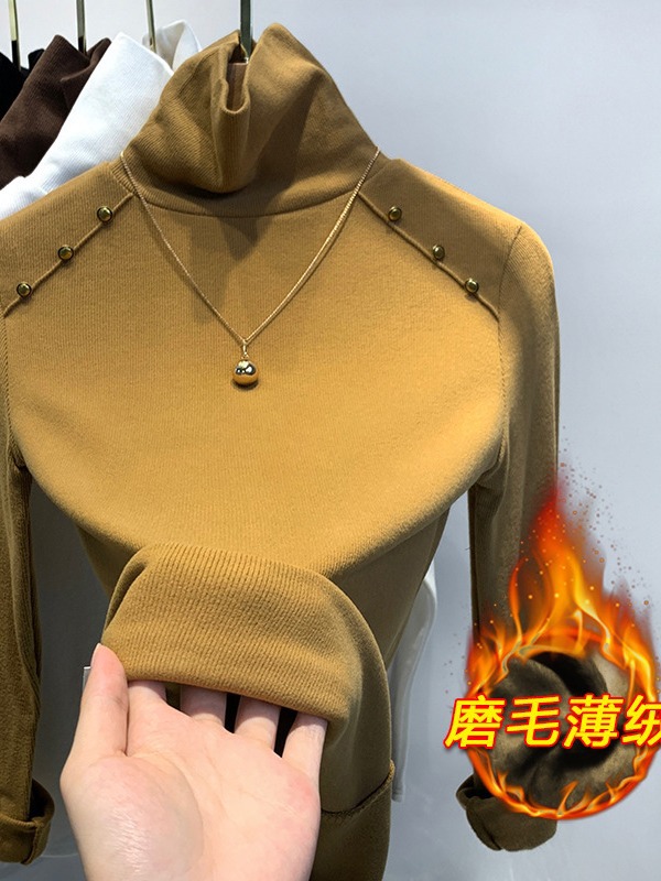 봄, 가을, 겨울 반 터틀넥 바닥 셔츠 여성용 티셔츠 긴 소매 올 매치 슬림 핏 브러쉬 탑 기모 따뜻한 내복 새로운