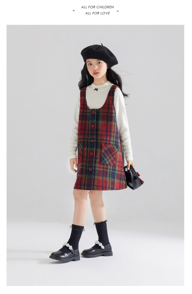 소녀 조끼 원피스 2024 가을 겨울 새로운 도착 CUHK 어린이 봄과 가을 모직 스트랩 드레스 아기 봄과 가을 원피스스토어 가기