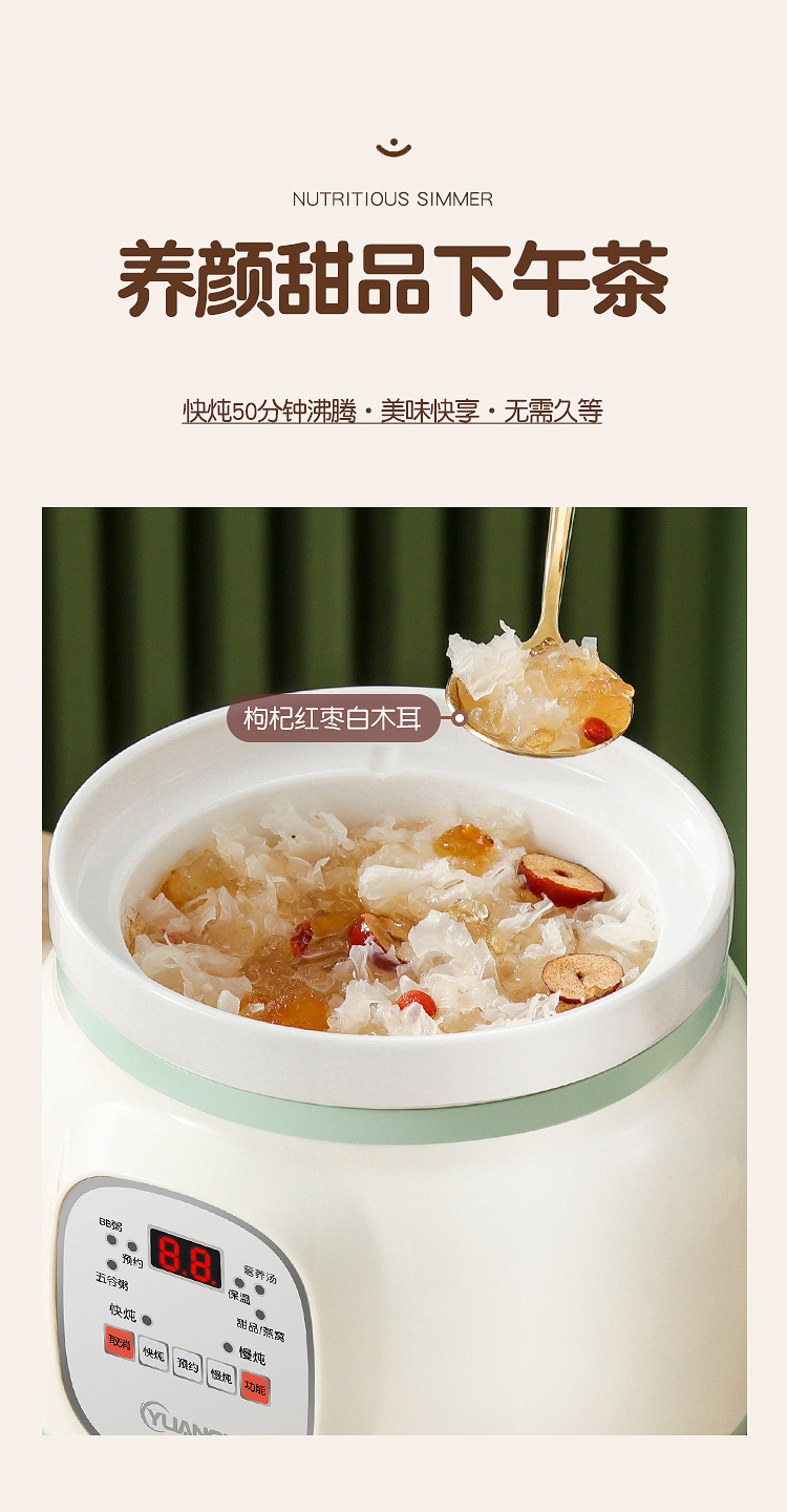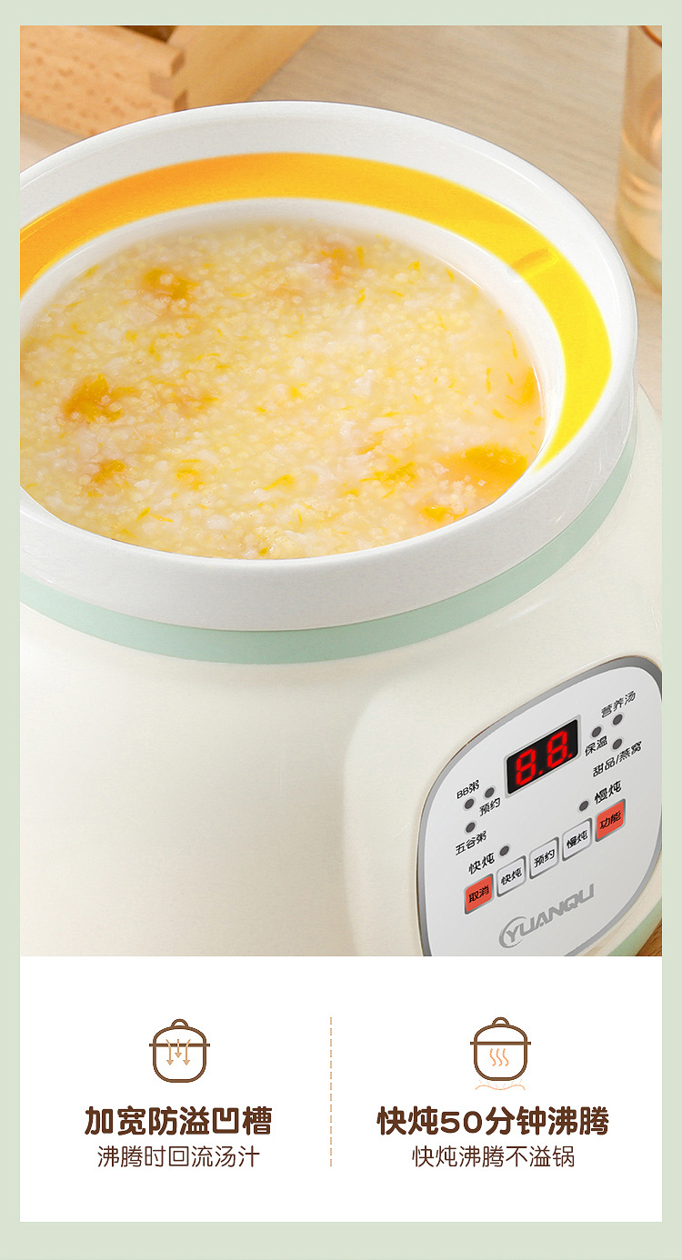 세라믹 전기 스튜 냄비 수프 미니 작은 죽 요리 유물 가정용 자동 오버 플로우 냄비 빠른 죽 요리 전기 스튜 냄비