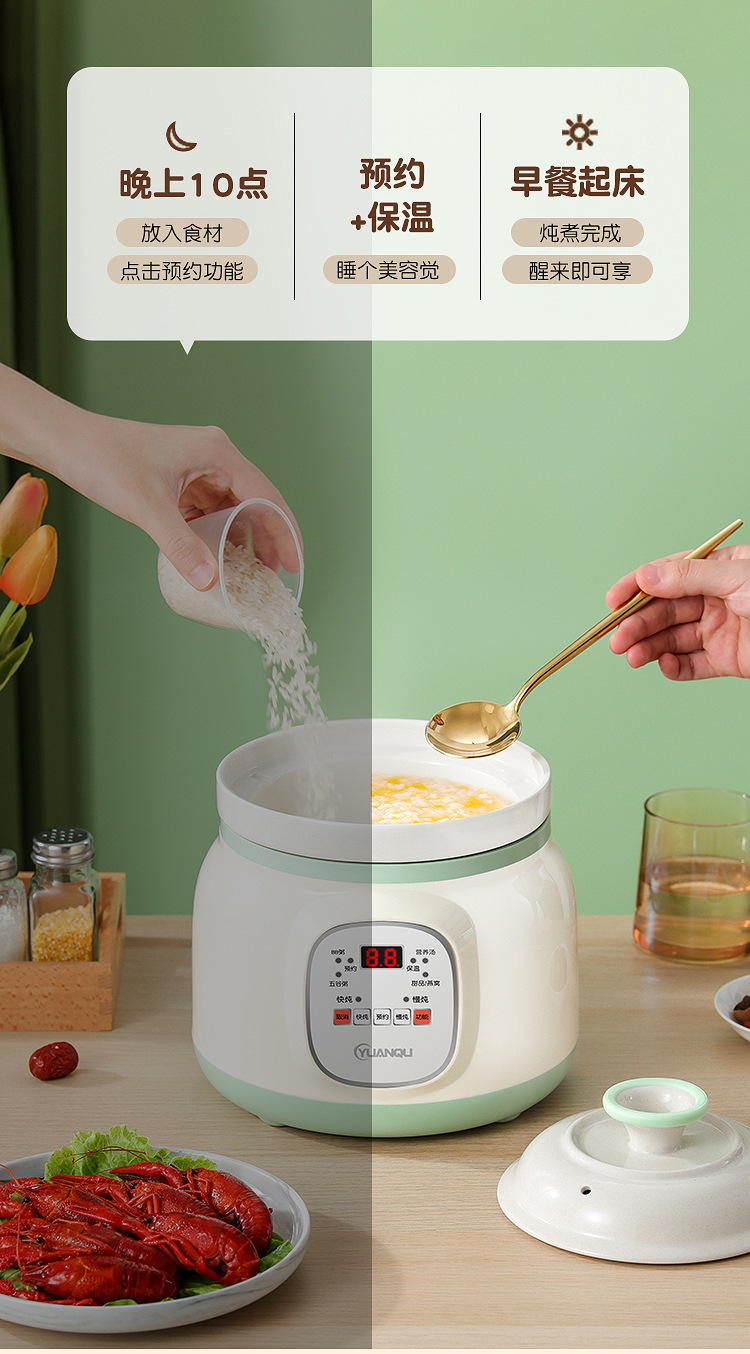 세라믹 전기 스튜 냄비 수프 미니 작은 죽 요리 유물 가정용 자동 오버 플로우 냄비 빠른 죽 요리 전기 스튜 냄비스토어 가기