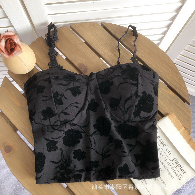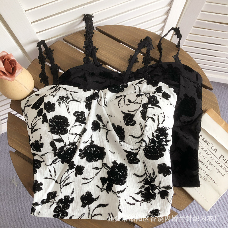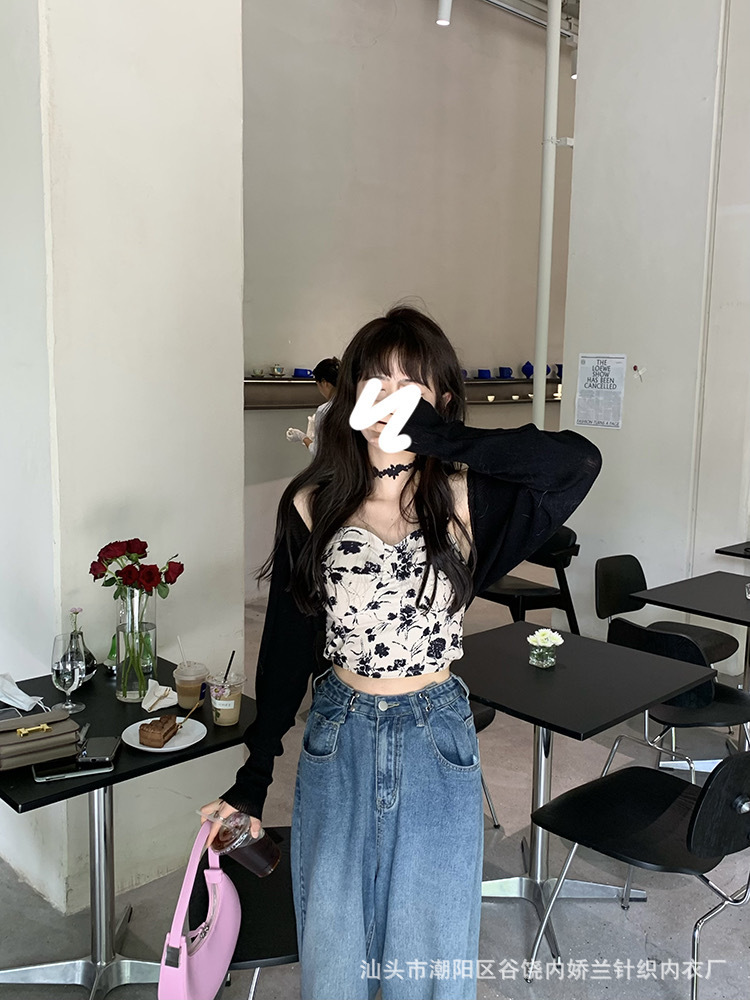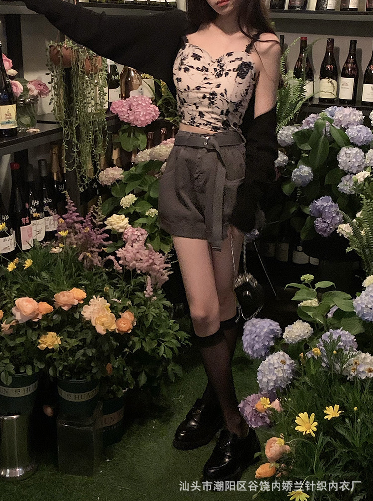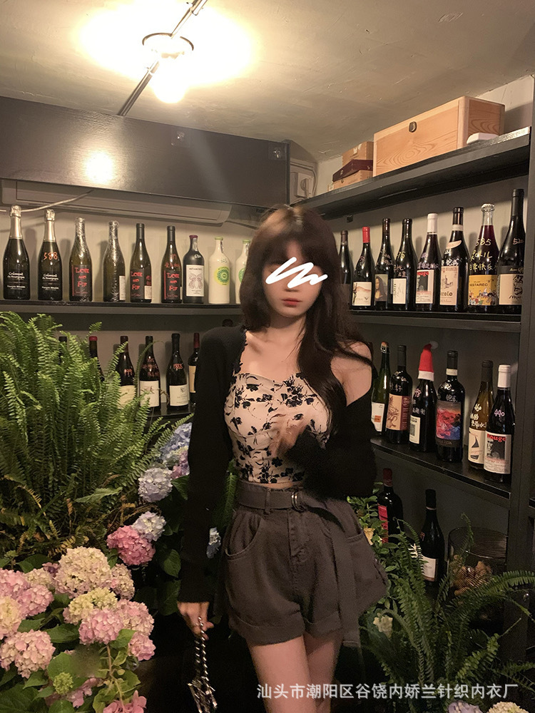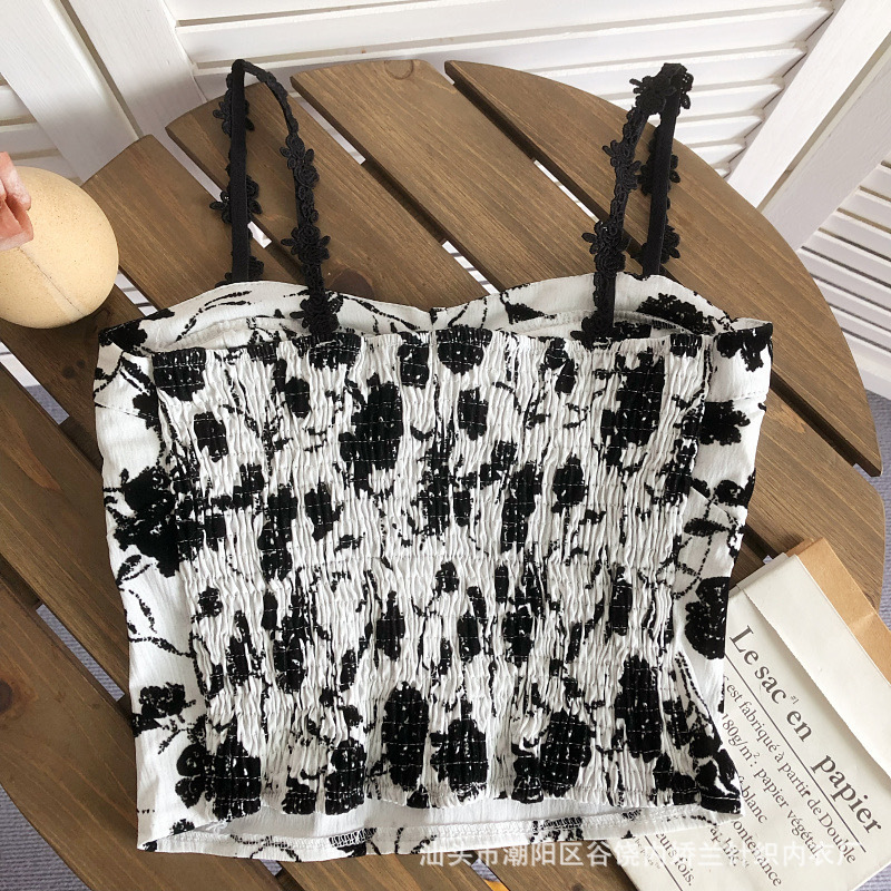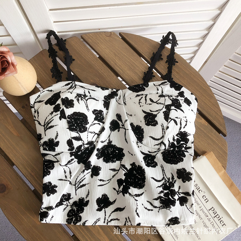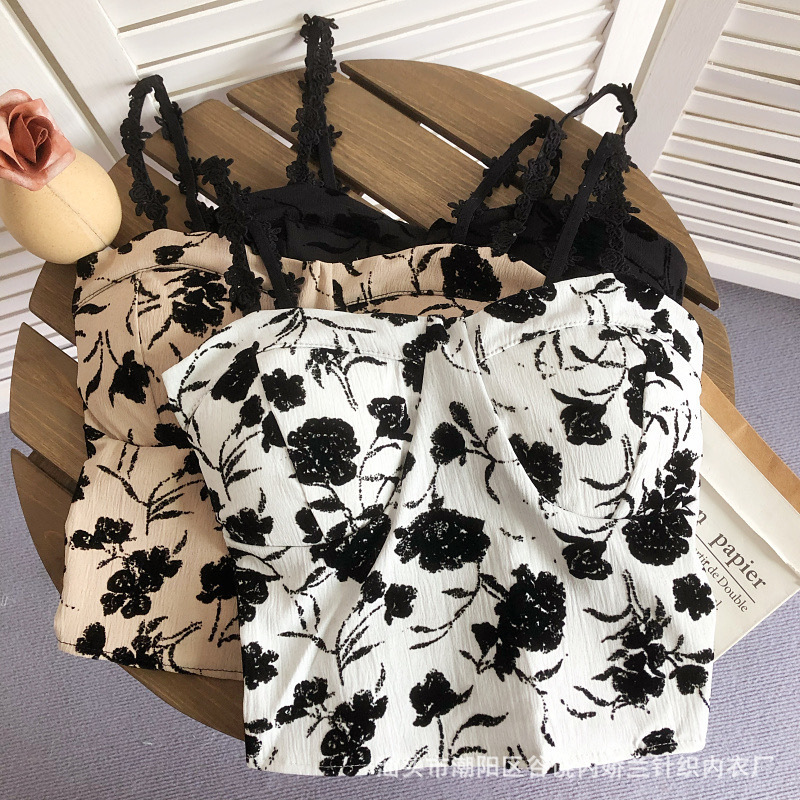 프랑스 꽃 작은 캐미솔 여성의 여름 겉옷 짧은 세련된 튜브 탑 여성의 가을 달콤한 쿨스토어 가기