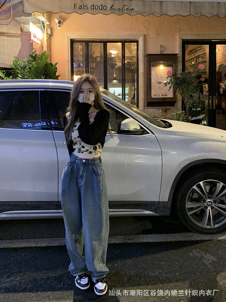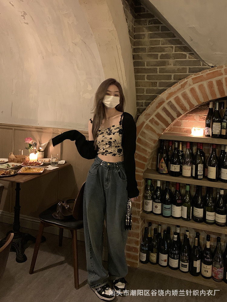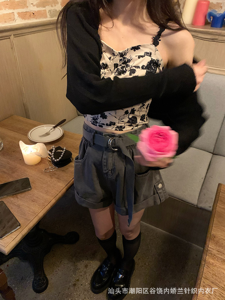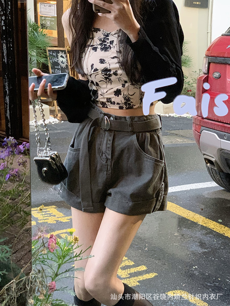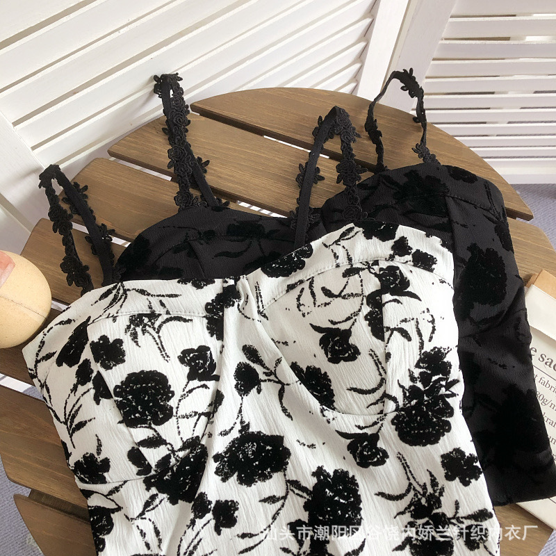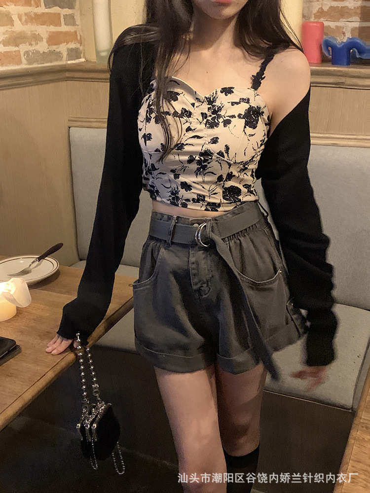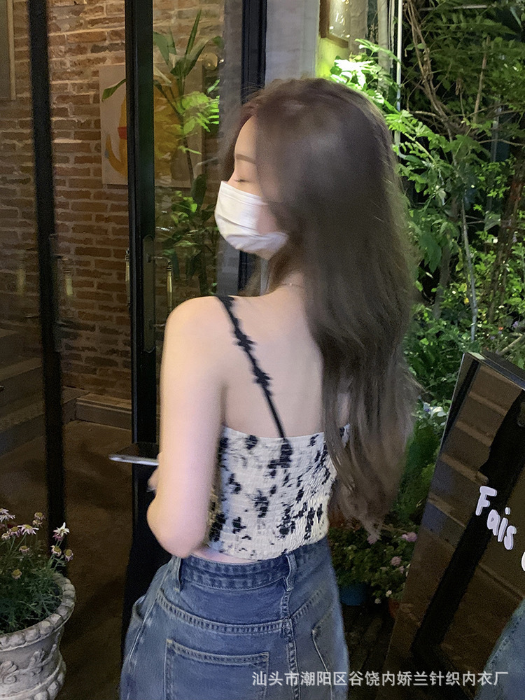 프랑스 꽃 작은 캐미솔 여성의 여름 겉옷 짧은 세련된 튜브 탑 여성의 가을 달콤한 쿨스토어 가기