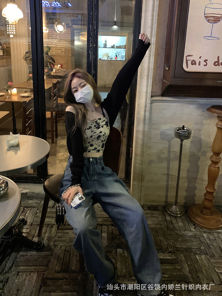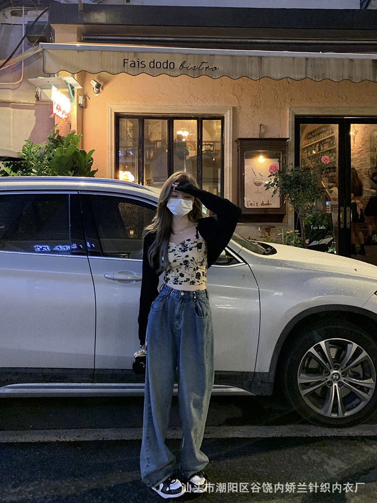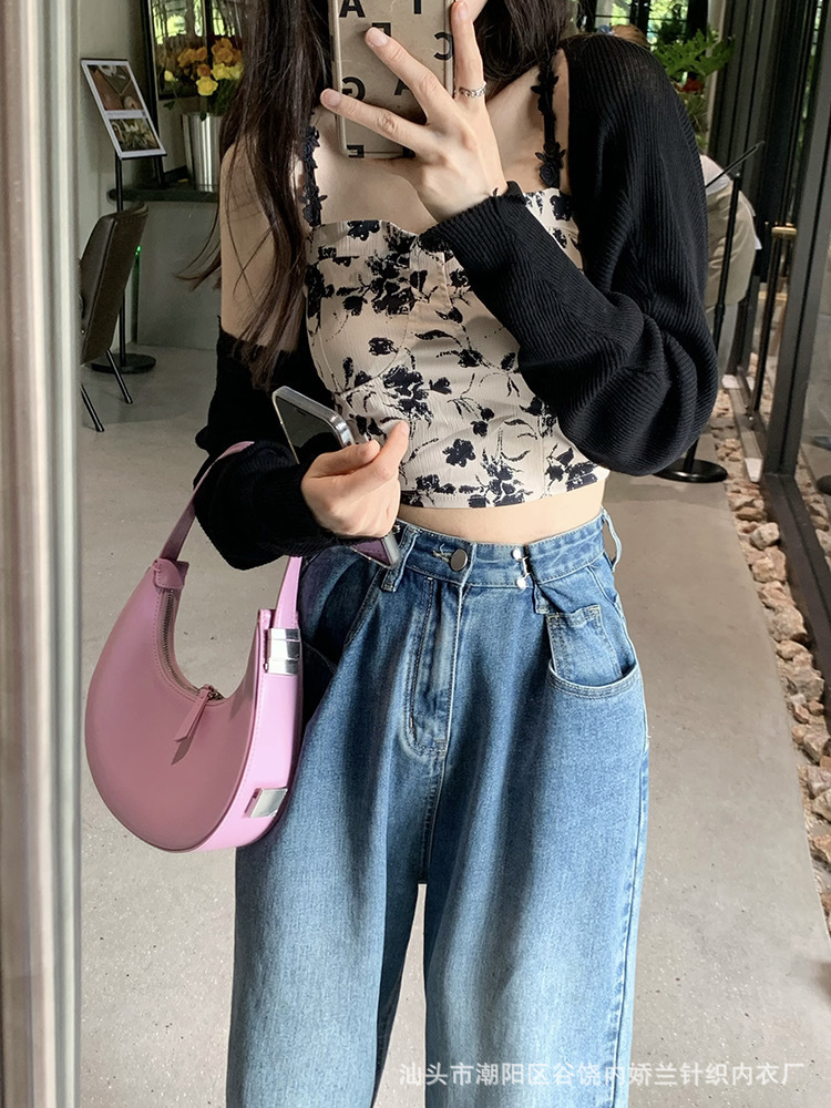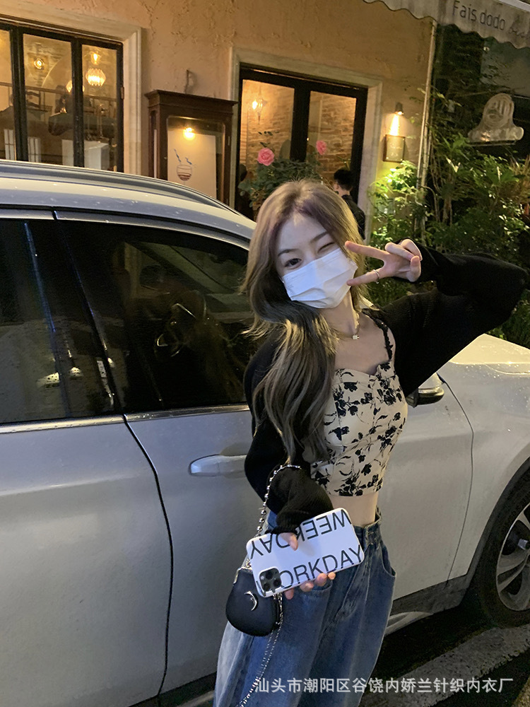 프랑스 꽃 작은 캐미솔 여성의 여름 겉옷 짧은 세련된 튜브 탑 여성의 가을 달콤한 쿨