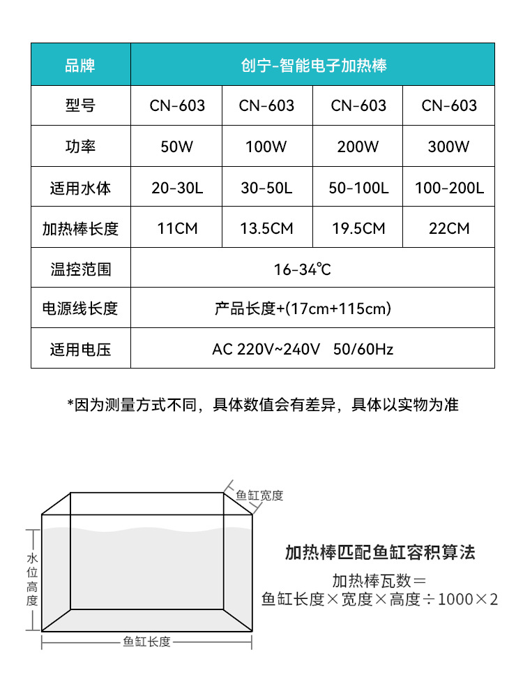 • CN-603 외부 디지털 디스플레이 가열 막대 50W