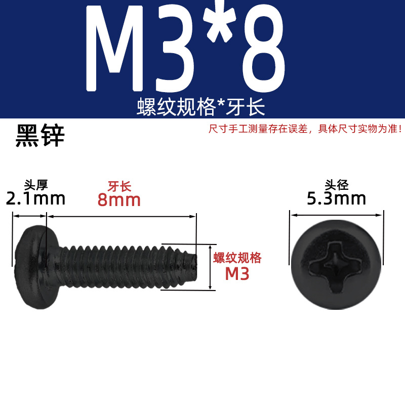 • 둥근 머리 수축 M3 * 8 검은 아연