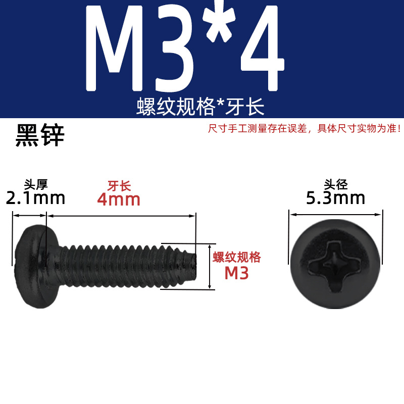 • 둥근 머리 수축 M3 * 4 검은 아연