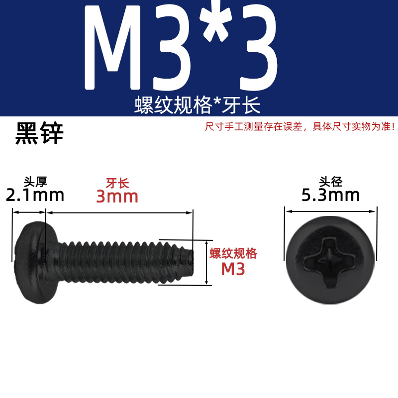 • 둥근 머리 수축 M3 * 3 검은 아연