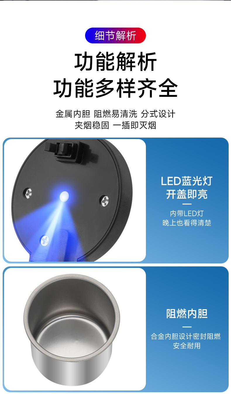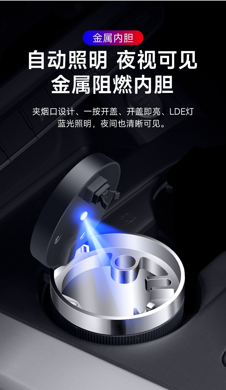 가벼운 원 클릭 열린 커버 자동차 재떨이와 함께 다기능 프레스 금속 라이너 자동차 재떨이스토어 가기