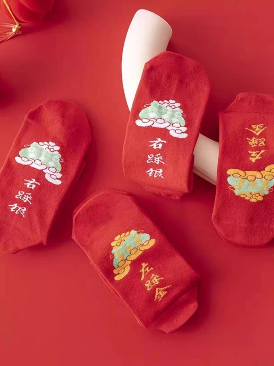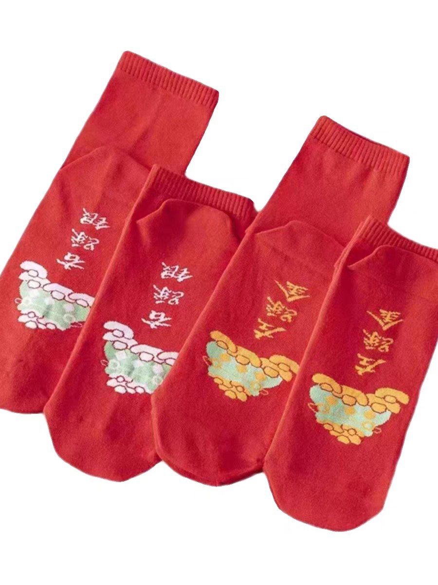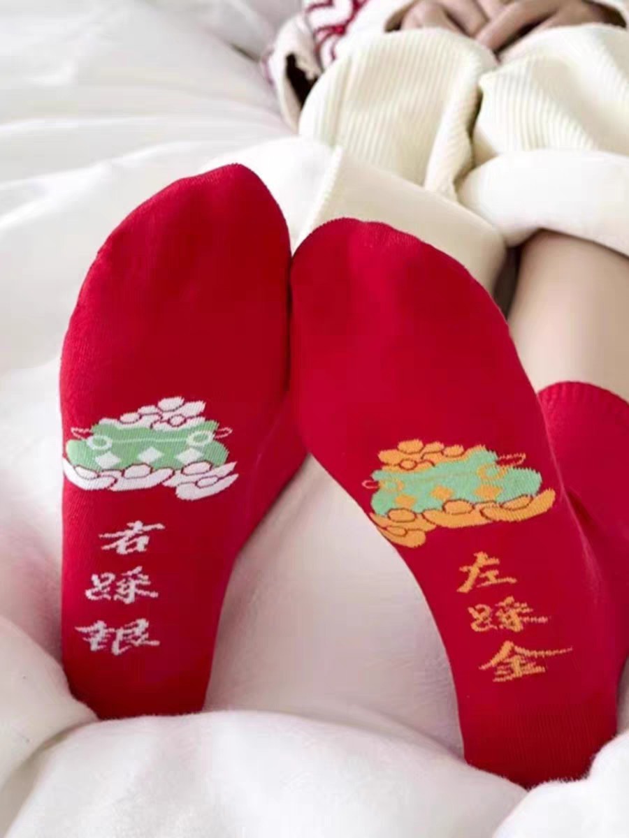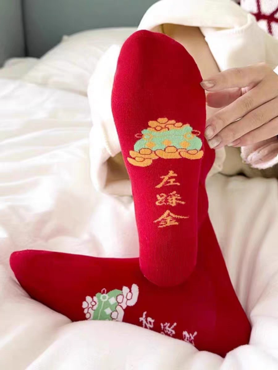 실버 출생 연도에 금 오른쪽 단계에 왼쪽 단계 붉은 양말 여성의 순면 새해 용 축제 중반 종아리 양말 남성과 여성의 큰 빨간 양말
